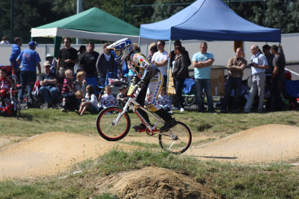 Yenten startte zijn reeksen met telkens een superstart... he took the holeshot!!! Hij schoot uit de startblokken met enkel de vrije baan voor zich... hij reed de concurrentie gewoon op een hoopje met telkens een ruime voorsprong... de oogjes fonkelden! Hij kon zijn superprestaties telkens doorzetten en zo de A-finale halen... Hier had hij weer een superstart en kon zich gaan moeien voor een 2e stek... maar toen ging het even mis, in het eerste stuk ging hij even van de trappers en moest hij herbeginnen... hij behaalde toch maar mooi de 3e podiumplaats binnen na Robbe Dens en Yari Waeyenberghe (dikke proficiat aan hen)!!!