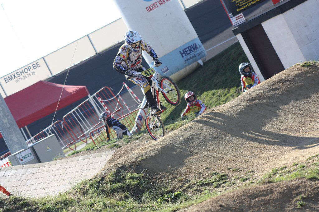 Zondag werd de eerste van de 2 wedstrijden gereden van de BMX Challenge Cup Wallonie. Door de vele regen lag het parcours er nogal lastig bij... maar gelukkig scheen het zonnetje wel tijdens de wedstrijd. Hier en daar een succes reeks voor de jongens waardoor zij uiteindelijk beiden konden doorgaan naar de B-Finale. Hierin kon Yenten duidelijk de Hole Shot nemen en eindigde hij met ruime voorsprong op de 1e plaats... Quinten had hier iets meer tegenstand en eindigde uiteindelijk als 3e in zijn finale.