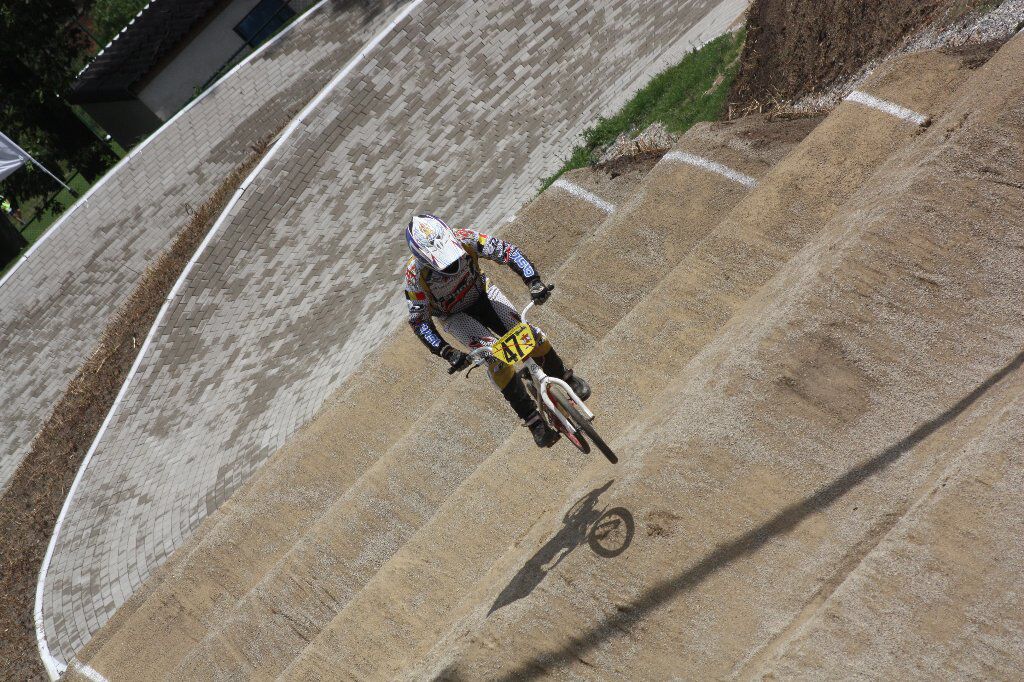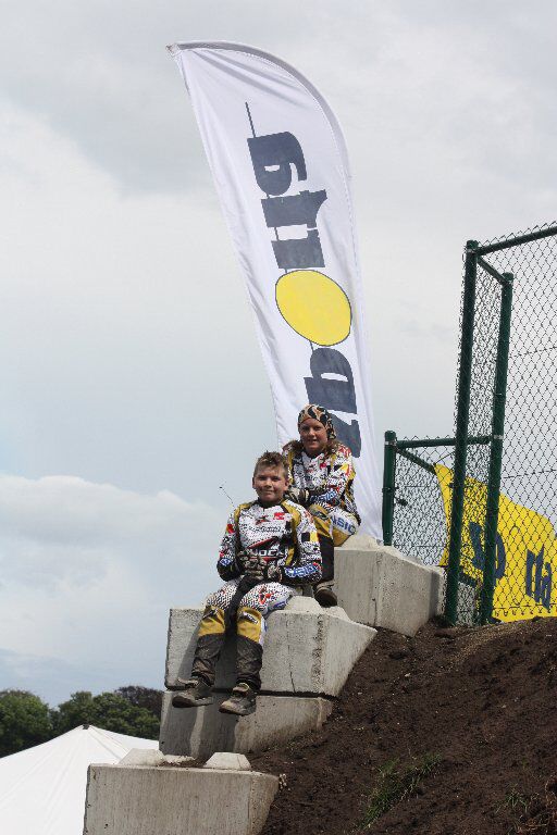 In de namiddag was het dan de beurt aan Quinten bij de Boys 12... ondertussen was de zon goed van de partij en de wolken verdwenen... wat het voor Quinten alleen maar lastiger maakte! Toen we naar de reeksindelingen gingen kijken, bleek vlug dat hij samen met zijn clubgenoot Chacotay Hindryckx in de reeksen zat... hopelijk loopt dit allemaal goed af! Gelukkig zijn het héél sportieve jongens en kennen ze elkaars kwaliteiten... Quinten startte telkens mooi mee met de eersten, en plaatste zich onmiddellijk achter Tay... Hier en daar kwam er ook een mooie sprong naar boven... t was genieten! Zijn eerste reeks eindigde hij mooi als 3e. In zijn 2e reeks had hij zich opnieuw mooi op die 3e stek gevestigd maar verslikte zich even op het derde stuk... waardoor de 2 achterliggers onmiddellijk bij hem kwamen... op de rythm sectie was het een gevecht tussen 3 piloten naast elkaar... waar Quinten uiteindelijk het onderspit moest delven! In zijn laatste kwalificatiereeks wist hij dat hij weer beter moest doen... met opnieuw een mooi verdiende 3e plaats! In de 1/4 finales had hij gelukkig opnieuw een superstart en ging hij mooi mee met de kopgroep... resultaat: als 3e over de finish, dus die 1/2 finale was ook weer behaald! Vanaf hier ging het allemaal al heel wat moeilijker... hij eindigde als 8e dus ging hij door naar een B-finale. Hierin had hij een mindere start (alhoewel... die anderen startten echt super) en eindigde uiteindelijk opnieuw als 8e wat goed was voor een 16e plek in het dagklassement.