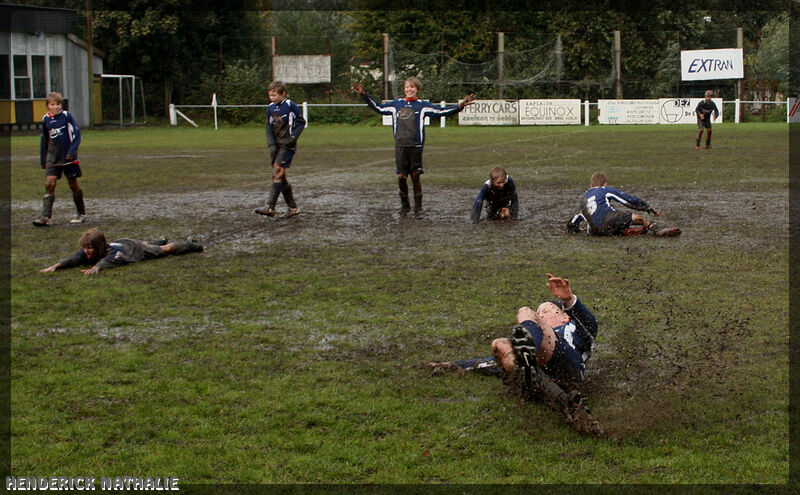We amuseren ons altijd op t voetbalveld... zeker als t veel geregend heeft (ik glij hier beneden)