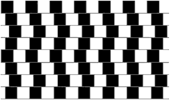 De lijnen in het bovenstaande plaatje lijken schots en scheef te lopen. Elke lijn is echter volstrekt horizontaal! Probeer er maar eens een lineaal langs te leggen.