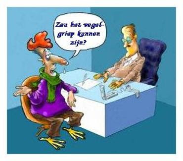 OF .. Volg het nu volgende advies: Bedenk dit Als je voor de prik gaat, wat doen ze dan als eerste? Men maakt je arm schoon met alcohol Waarom? Omdat alcohol de bacterieën doodt. Duswat doe ik . Ik wandel naar 't café. (beweging!) Ik doe wijn in mijn glas ..(fruit) en selderie in my Bloody Mary (groenten). Drink het buiten op het terras (frisse lucht ). Vertel moppen, veel lachen .(goed tegen de stress). Dan val ik in slaap. (rust) Dus zoals ik het bekijk . Zo lang je de alcohol maar op peil houdt, Kan de griep je niet belagen !