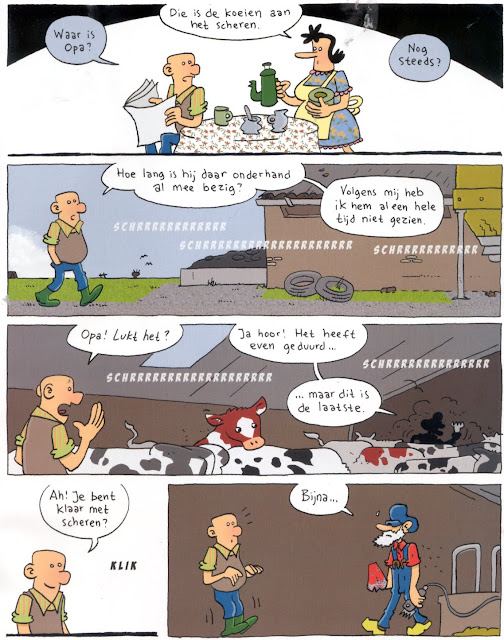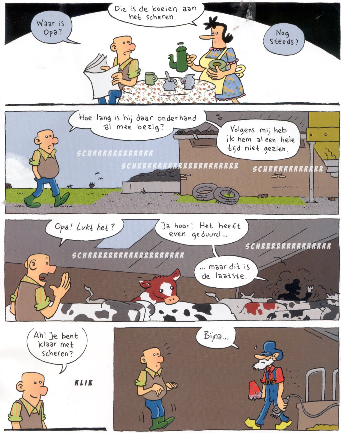 En dan eindelijk weer eens een stripje....Het even geduurd,maar er kunnen weer plaatjes gedownload worden..En ach.... opa heeft even de tijd gehad om de koeien te scheren...