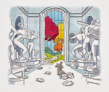 Een echtpaar bezocht een galerie om kunst te bekijken. Op een van de schilderijen was een beeldschone dame te zien, die op haar strategische plekken alleen maar een paar boomblaadjes droeg. De vrouw vond dat het kunstwerk getuigde van wansmaak en liep vlug door, maar haar man bleef als aan de grond genageld staan. Waarop wacht je nog? Op de herfst soms?