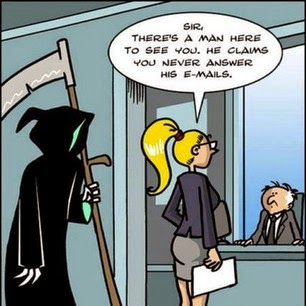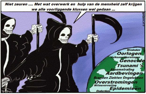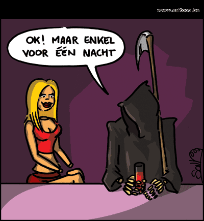 Na een tamelijk heftige week ga ik toch proberen de draad weer op te pakken. Er is veel werk blijven liggen en we krijgen zeker nog veel aanloop de komende weken, maar ik ga toch weer proberen om een paar logs in elkaar te flansen. 'De dood' wordt veelal zeer serieus genomen..... En misschien zijn er mensen die het me kwalijk nemen, maar er is ook een humorvolle keerzijde..... en die wil ik deze week proberen te laten zien. Daar om beginnen we met:
