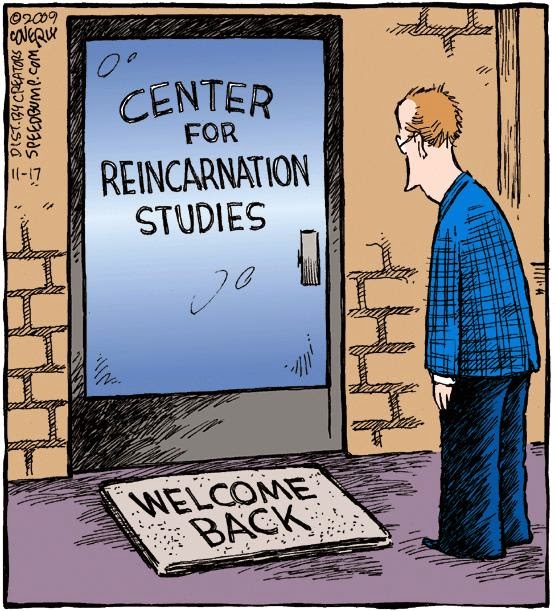 Dan nog een paar maanden aan een vrouwenborst sabbelen, nog 9 maanden in de warme moederbuik, en daarna verdwijn je in één alles verzwelgend, gelukzalig orgasme! Veel beter toch?