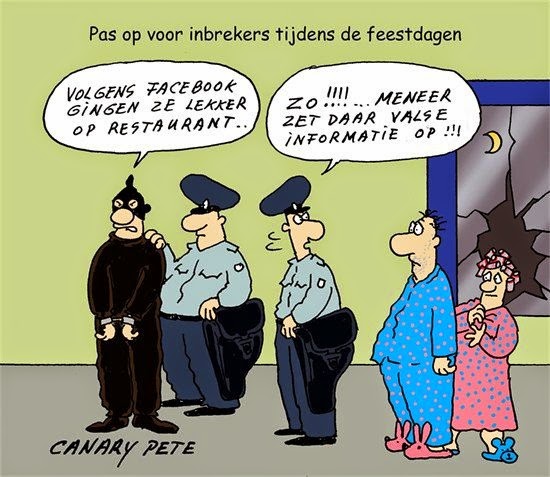 Sjors Filipsen uit Medemblik ging naar bed, toen zijn vrouw zei dat er licht brandde in het tuinschuurtje,wat ze net kon zien uit het slaapkamerraam. Sjors ging naar de achterdeur om het licht in het schuurtje uit te doen,toen hij zag dat er een paar kerels zijn spullen aan het jatten waren. Gauw belde hij 112, en zei: er lopen dieven in mijn achtertuin, en die stelen mijn spullen. De brigadier vroeg: zijn ze ook in huis? , en Sjors zei : nee. Toen zei de brigadier: doe de deur goed op slot, dan komen we als we tijd hebben even langs, want alle politie-auto's zijn op dit moment ergens anders bezig. Sjors zei: OK, hing op en telde tot honderd. Toen belde hij weer 112. Met Sjors Filipsen, ik belde zojuist ook al dat er dieven in de tuin liepen, nou, ik heb ze zojuist allemaal neergeschoten. En hij hing de telefoon weer op. Binnen vijf minuten kwamen er drie politiewagens aanscheuren,en een ambulance. De politieagenten rekenden de inbrekers in op heterdaad. De brigadier kwam naar Sjors en zei: ik dacht dat jij ze had neergeschoten? Sjors zei: Ik dacht dat jij geen auto's ter beschikking had?