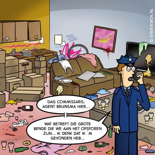 Een man komt een politiebureau binnen en zegt tegen de dienstdoende agent: “Ik heb begrepen dat de inbreker die in ons huis heeft ingebroken gearresteerd is. Ik wil graag even een woordje met hem spreken”. De agent: “Ik begrijp dat u kwaad bent meneer, maar dit kan ik natuurlijk niet toelaten”. “Nee nee, u begrijpt me verkeerd,” zegt de man, “ik wil alleen maar van hem weten hoe hij binnen is gekomen, zonder mijn vrouw wakker te maken”.