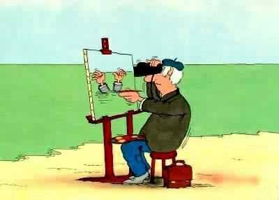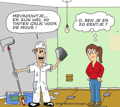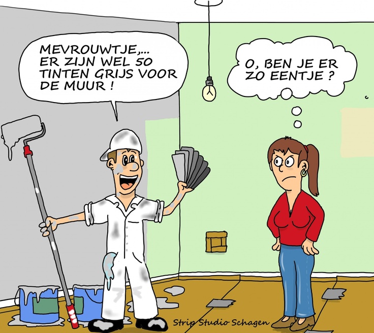 Een schilder in de achterhoek kreeg van Rijkswaterstaat een mooie opdracht. Hij moest strepen schilderen op de weg. De eerste dag schildert hij 300 meter strepen. De tweede dag 125 meter strepen. De derde dag 60 meter strepen. Een ambtenaar van Rijkswaterstaat vraagt de schilder: Zeg schilder waarom loopt uw productiviteit zo achteruit? De schilder zegt: U moet natuurlijk niet vergeten dat de afstand tussen verfpot en kwast steeds groter wordt.