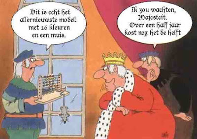 Helpdesk: "Hoe kan ik je helpen?" Klant: "Ik ben mijn eerste e-mail aan het schrijven." Helpdesk: "OK, en wat is het probleem?" Klant: "Wel, ik krijg wel de letter a, maar hoe zet ik er nu een rondje omheen?"