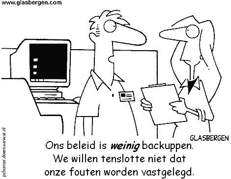 Een klant kon geen verbinding maken met het Internet. Helpdesk: "Weet u zeker dat u het juiste wachtwoord gebruikt?" Klant: "Ja, dat weet ik zeker. Ik heb het een collega zien doen." Helpdesk: "Kunt u mij zeggen welk wachtwoord dat was?" Klant: "Vijf sterretjes.".