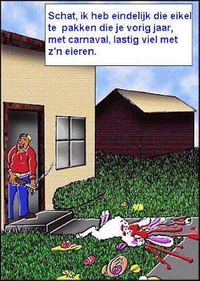 Wat ik je nu ga zeggen zal jullie misschien heel veel verdriet en pijn doen, maar voor je het van een ander hoort zeg ik het liever zelf! De PAASHAAS BESTAAT NIET.(daarom toch maar enkele moppen over dit wezen)