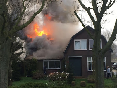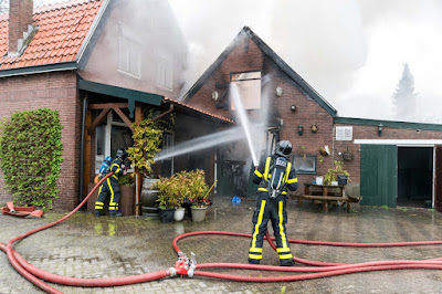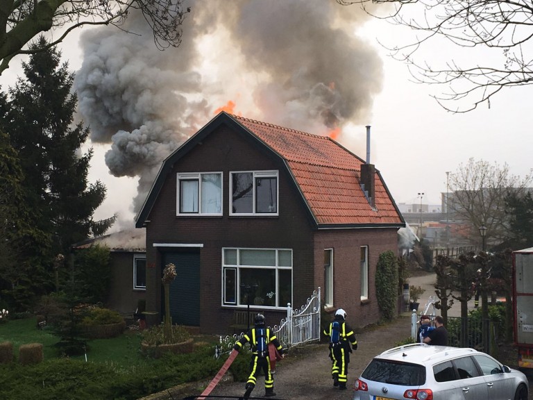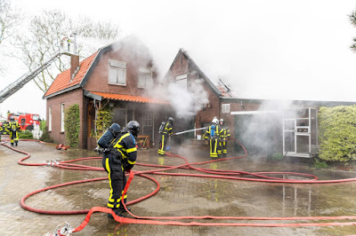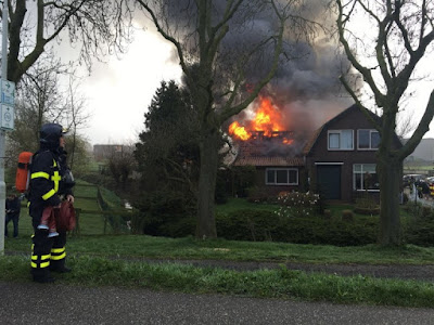 Vorige week vrijdag, 8 april, kregen we het verontruste telefoontje dat bij kennissen, fam. V.d. Berg in Gorinchem, brand uitgebroken was. Hun buurjongen is knecht op het bedrijf van mijn man en zwagers en tevens werkzaam bij de brandweer. Nadat zijn pieper afging is hij onmiddellijk ter plaatse gegaan. Daar bleken de bewoners van de woning en de paarden, die normaal in de schuur aan de woning staan, al veilig. Dankzij toegesnelde buren. De brandweer wist een hond en een vogel uit de schuur te redden.De brand was inmiddels een uitslaande brand, en vond plaats in een schuur aan een woning. De brandweer schaalde al snel op naar grote brand en kwam met meerdere blusvoertuigen ter plaatse. Een geluk was dat er voldoende water beschikbaar was door het Merwekanaal vlak voor de deur. Het koste alleen wel tijd om de slangen over de dijk te leggen voor de water aanvoer. Het woonhuis is gespaard gebleven, maar op het moment nog niet bewoonbaar door de rook- en waterschade.De fotos zijn gemaakt door: Roy Vermeer en Etiënne Hessels, en behoren toe aan de brandweer van ZHZ. (bedankt voor het gebruik hiervan )