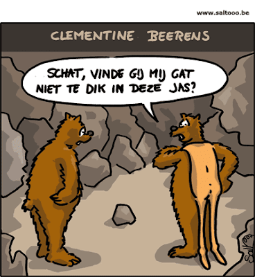 In dit leven ben ik een vrouw. Maar in mijn volgende leven kom ik terug als beer. Als je een beer bent, mag je winterslaap houden. Je doet 6 maanden lang niets anders dan slapen. Dat lijkt me wel wat. Voordat je je winterslaap gaat houden, moet je je wekenlang volproppen met eten. Dat lijkt me ook wel wat. Als je berin bent, baar je je babys (die zo groot als kastanjes zijn) terwijl je slaapt. Als je wakker wordt zijn het gedeeltelijk opgegroeide schattige lieve babybeertjes. Dat lijkt me helemaal wel wat. Als mamabeer weet iedereen dat met jou niet te sollen valt. Je mept iedereen die je kids lastig valt, en als je kids uit gareel lopen, mep je hun ook. Dat lijk me wel wat. Als je beer bent, dan VERWACHT je partner dat je grommend wakker wordt, hij VERWACHT dat je harige benen hebt, en hij VERWACHT dat je zwaar overgewicht hebt. Yep, ik kom terug als beer!
