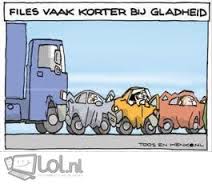 We zetten de week langzaam aan voort met een wisseling van thema.....Werden we gisteren nog op de hoogte gebracht van de file's die ontstonden door paas-recreanten.Vanaf vandaag nemen we het verschijnsel "file" onder de loep: