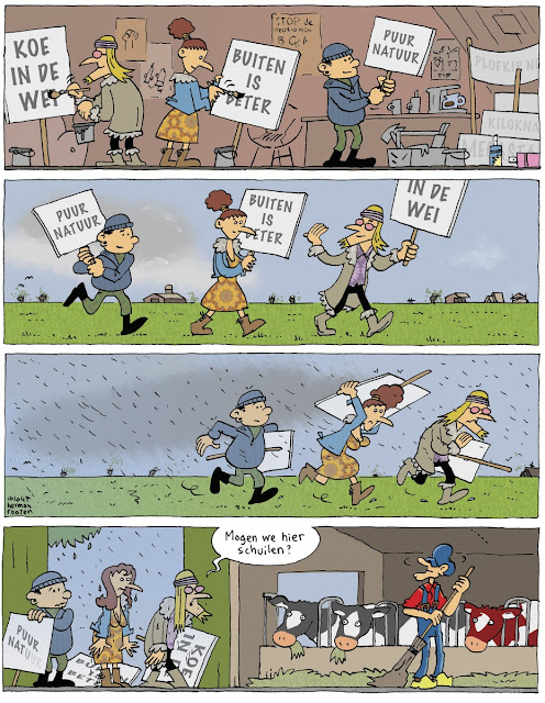 Paardenhandelaar Jansen leest in de krant: "mooie hannoveraan merrie te koop te koop die nu iedere dag kan veulenen."