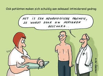 Een jong verpleegstertje moet voor het eerst de zaal op om de mannen te gaan wassen. Ze loopt naar de eerste man toe, kleedt hem uit en begint hem te wassen. Eerst wast ze met een grote boog om zijn piemel heen, maar uiteindelijk vat ze de moed om ook zijn penis te wassen. Ze pakt de penis vast en begint de onderkant en de bovenkant nogal onhandig te wassen. Waarop de patiënt zegt: Zuster, laat u m nou maar los: hij blijft nu uit zichzelf wel staan.