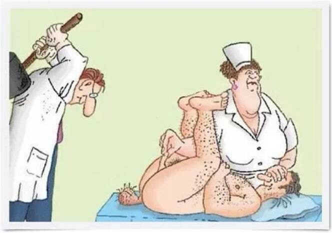 De zuster zet de trechter in de patiënt's anus en giet de thee naar binnen, en op een geven moment laat de patiënt een enorme scheet.