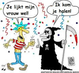 Jan en Mien zijn zijn naar het carnaval geweest. Als ze na het feest 's avonds willen gaan slapen, zegt Mien tegen Jan; 'Jan, 't is zo lang geleden, zullen we nog een keertje, 't hoort er toch bij met carnaval....?'