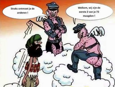 De hoer bekent dat ze prostituee is geweest. Dan mag je hier niet naar binnen, zegt Petrus, ga daar maar even op het bankje zitten.