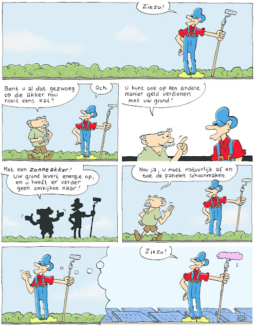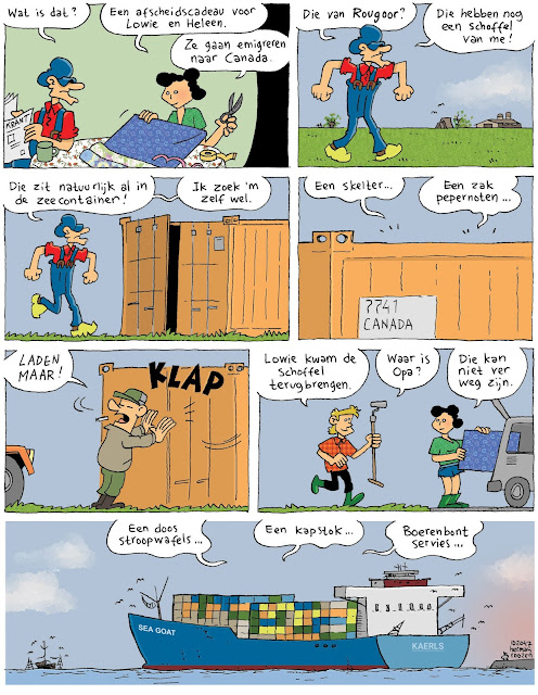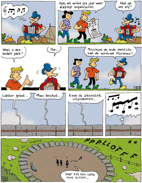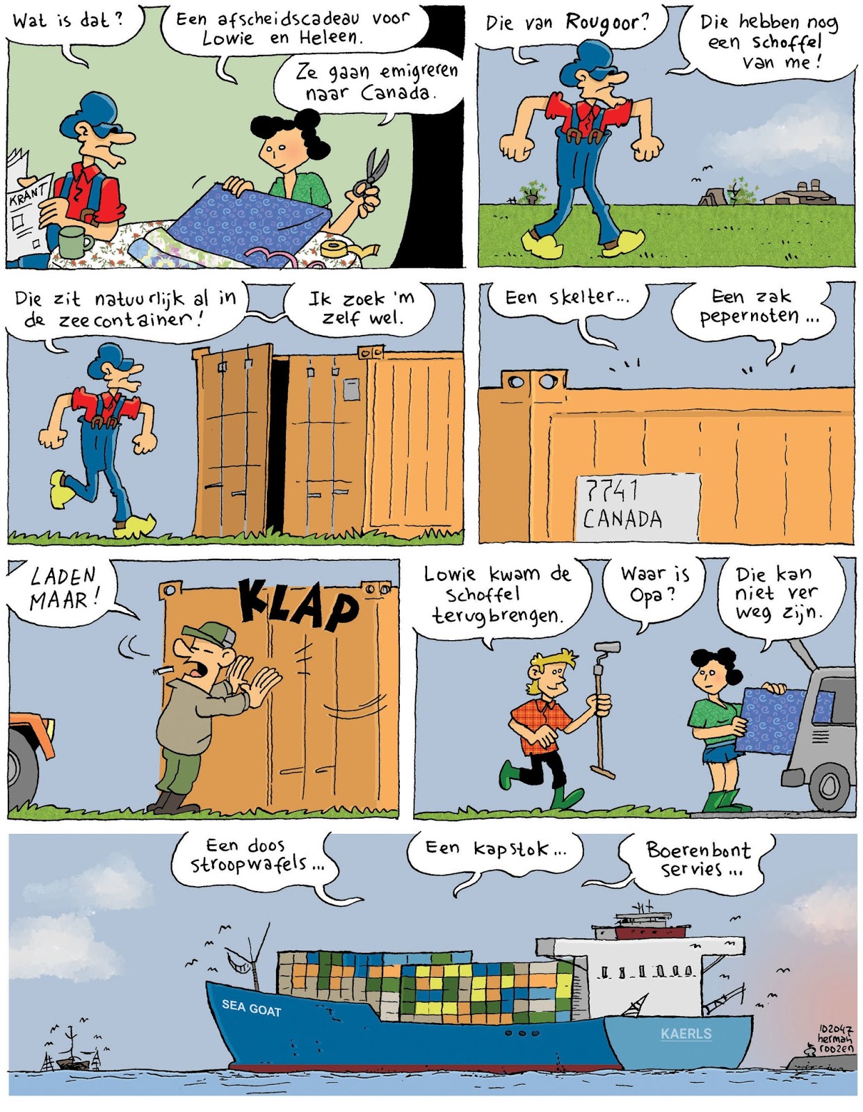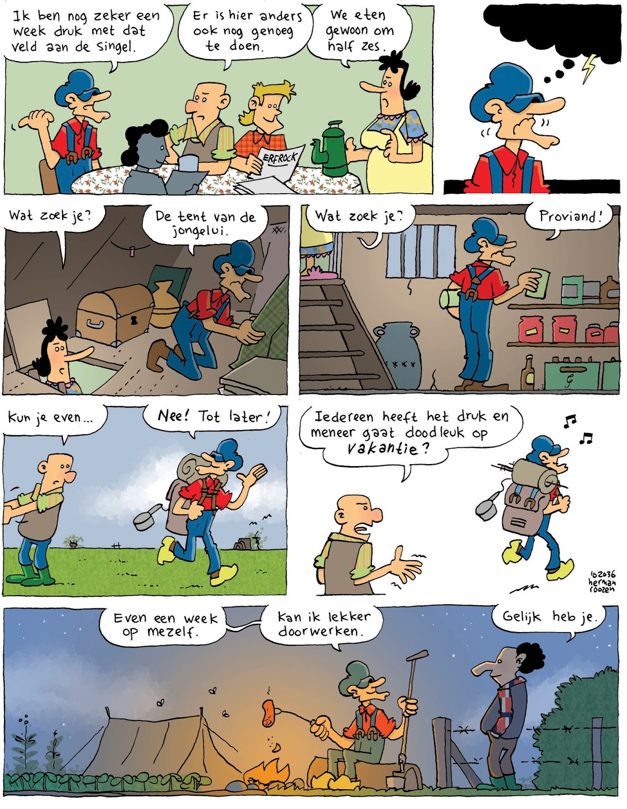 Zelfs Opa zelf komt er voor terug van kamperen om snel de strip in het weekblad De Boererij te lezen!