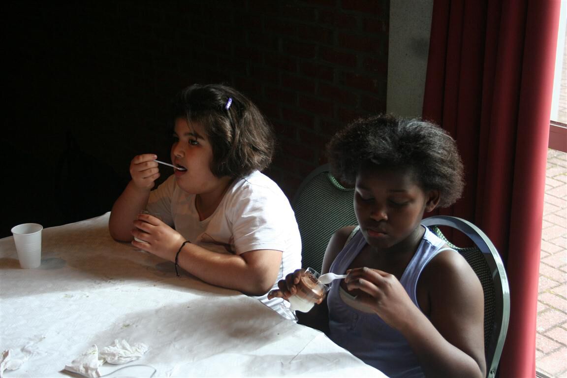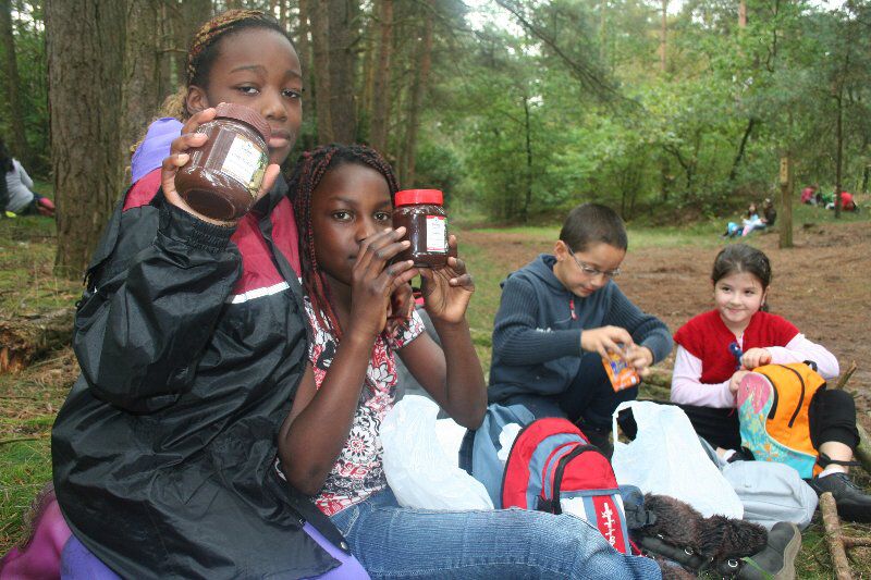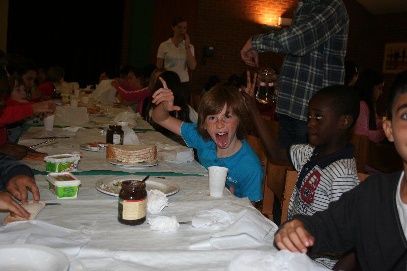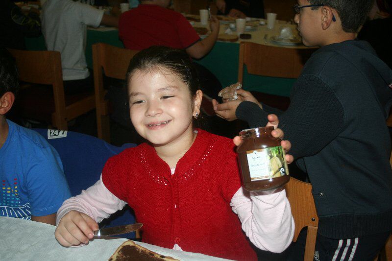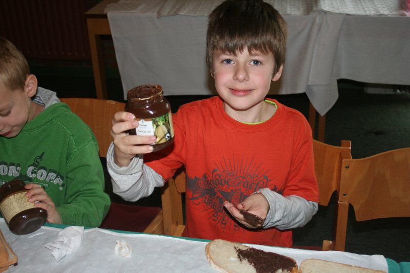 We smeerden lekkere Oxfam choco , een eerlijk product dat ook de kinderen in West-Afrika uit de kinderslavernij van de cacaoplantages kunnen gehaald worden .