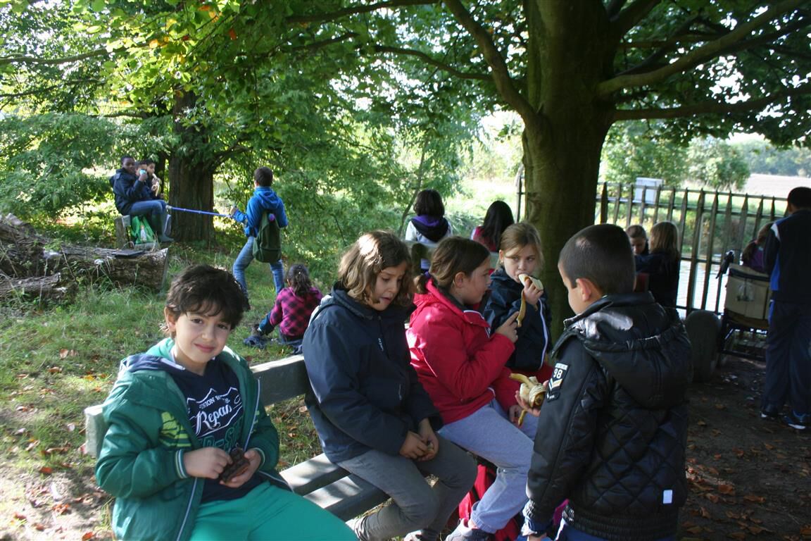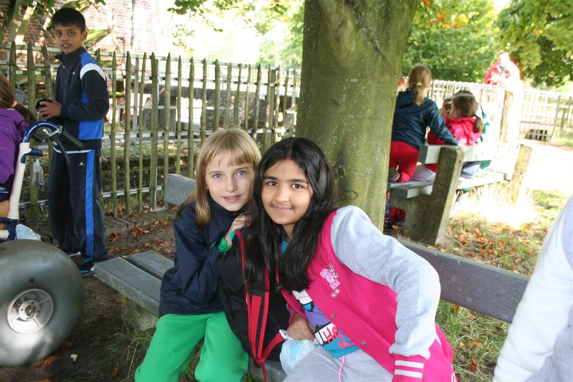 Onder een stralend zonnetje trokken we op speurtocht. We zochten onze weg aan de hand van foto's, maakten een windroos met natuurmateriaal en bouwden een kamp.