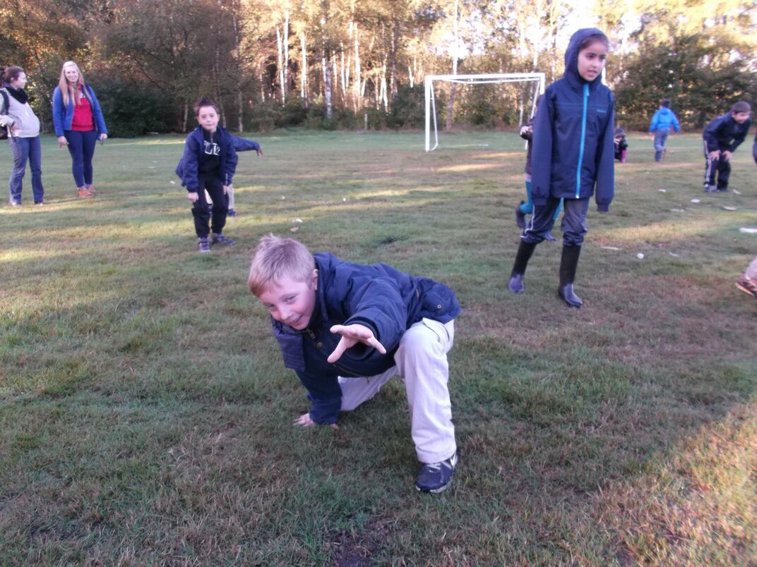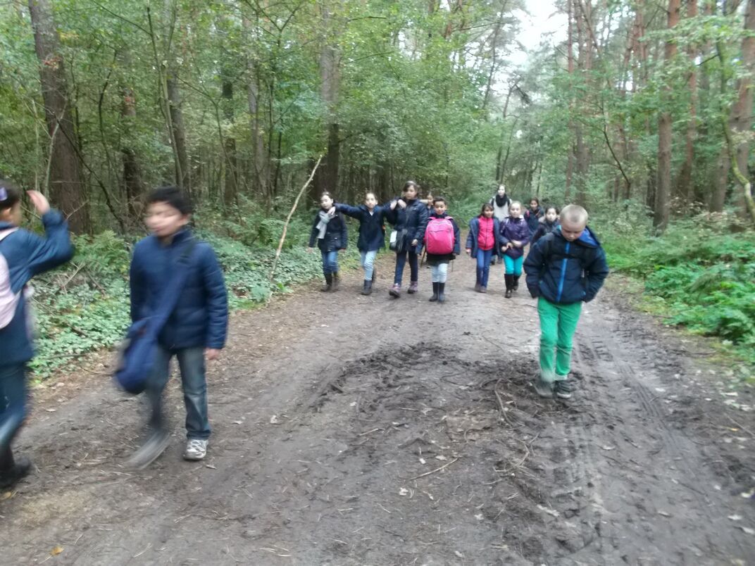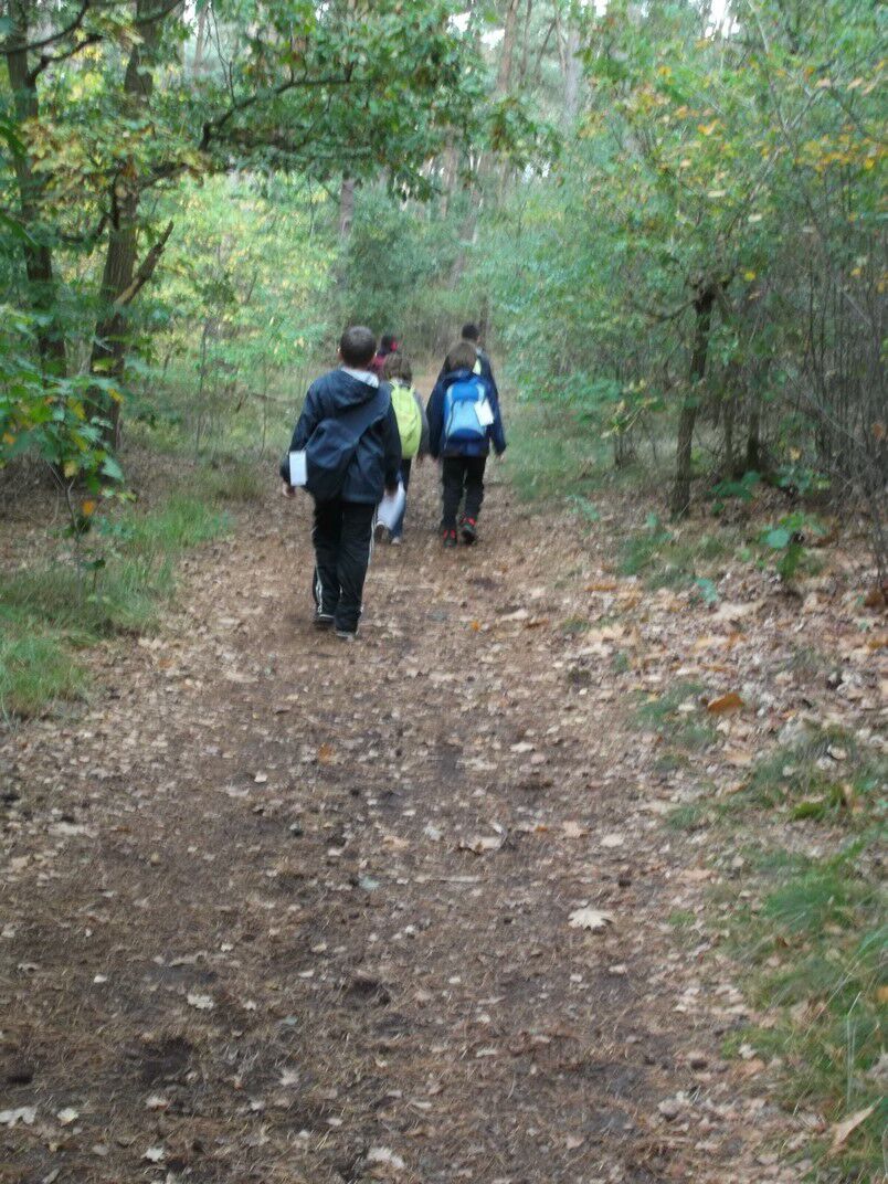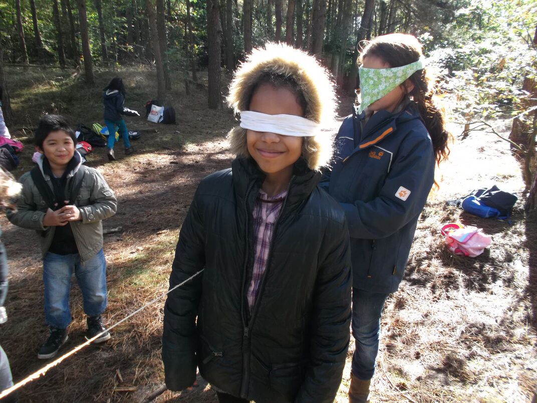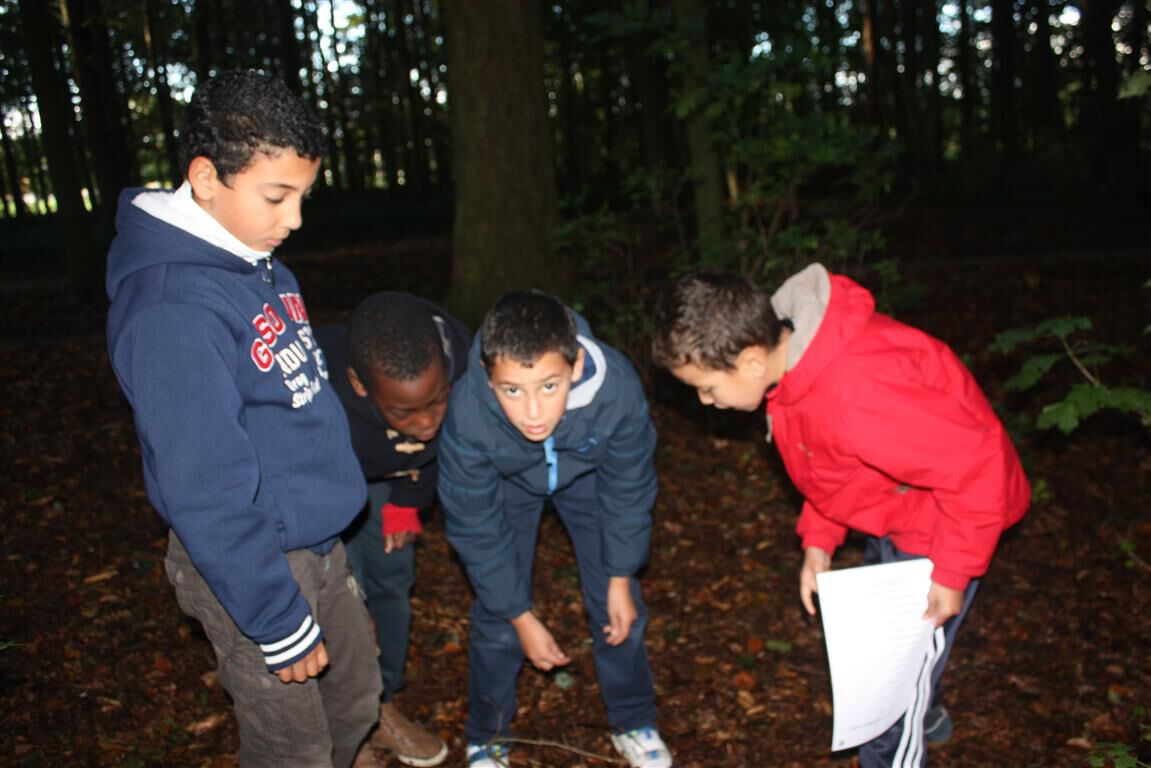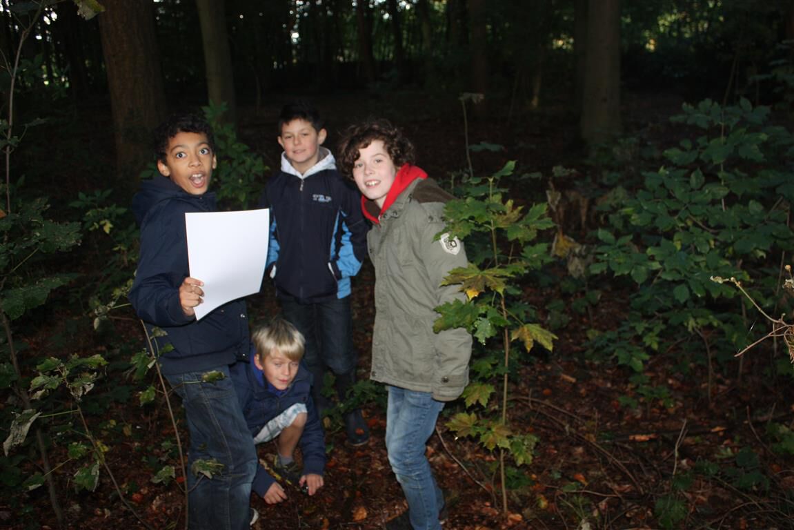 Onder een stralend zonnetje trokken we op speurtocht. We zochten onze weg aan de hand van foto's, maakten een windroos met natuurmateriaal en bouwden een kamp.