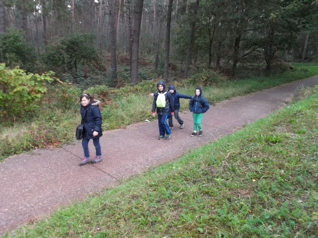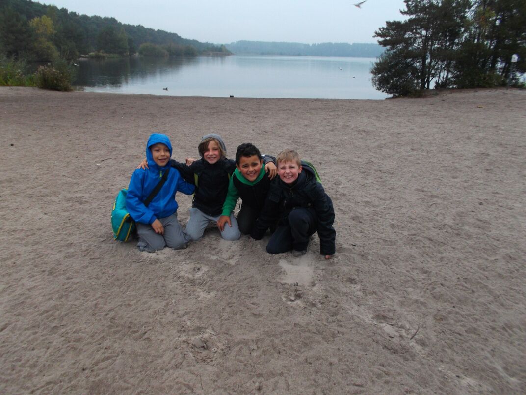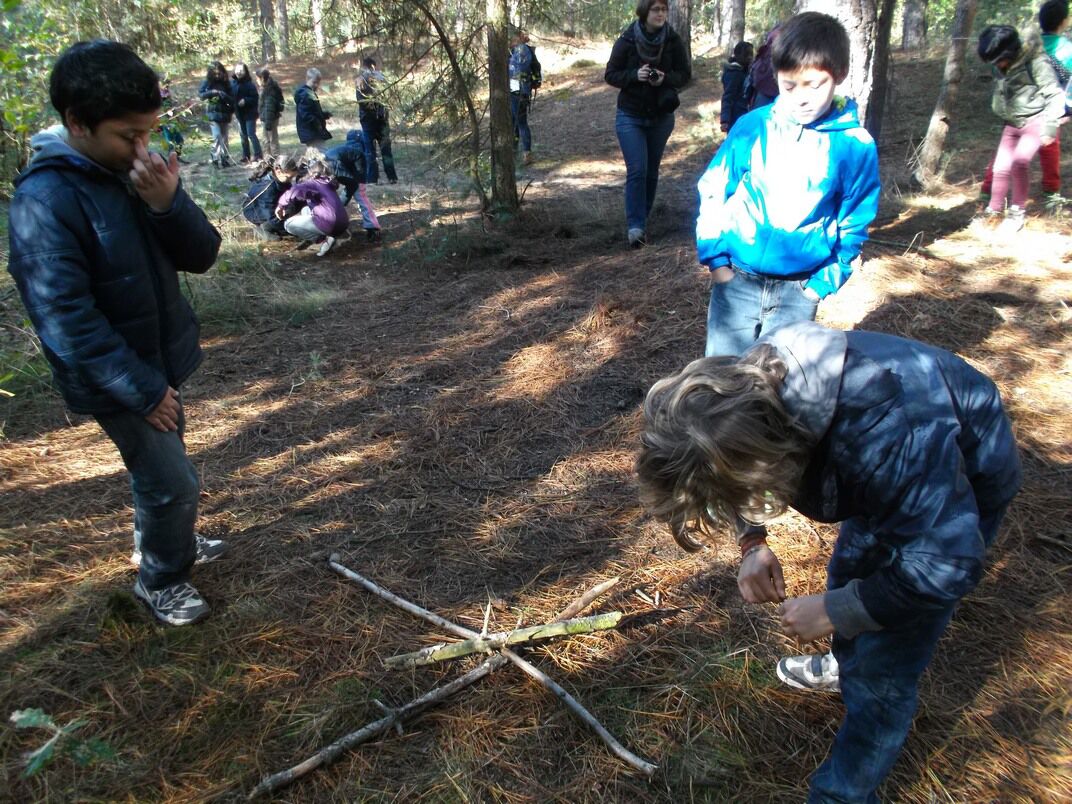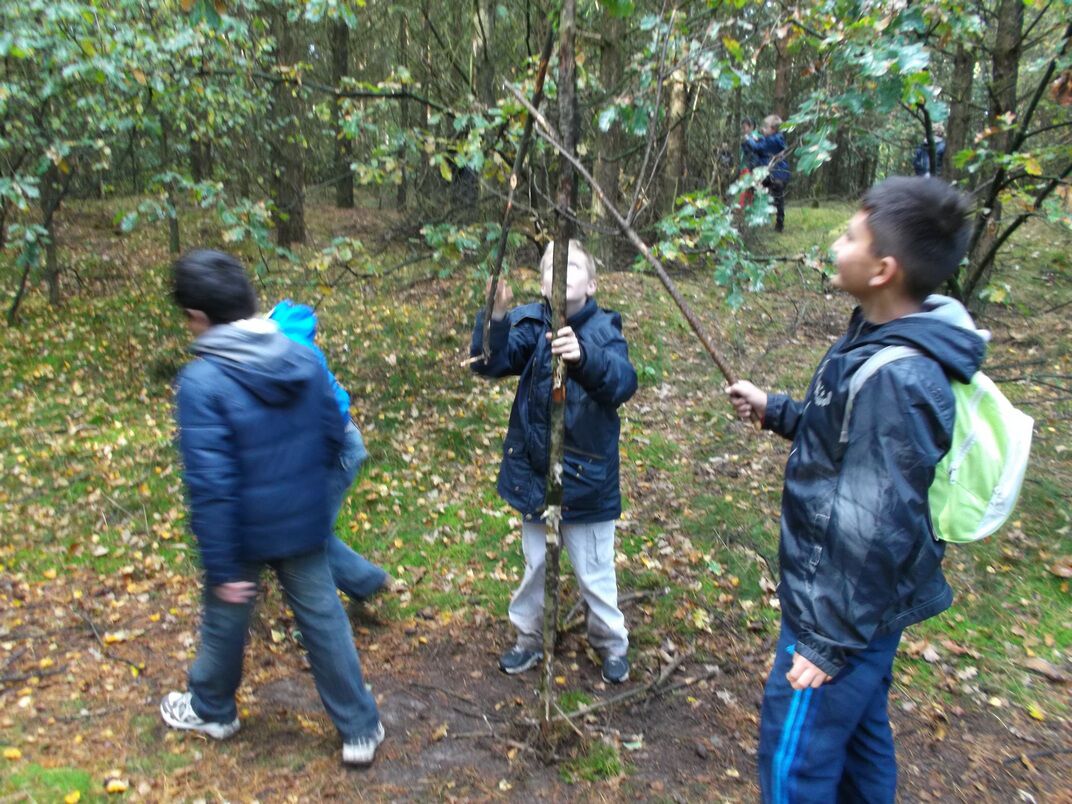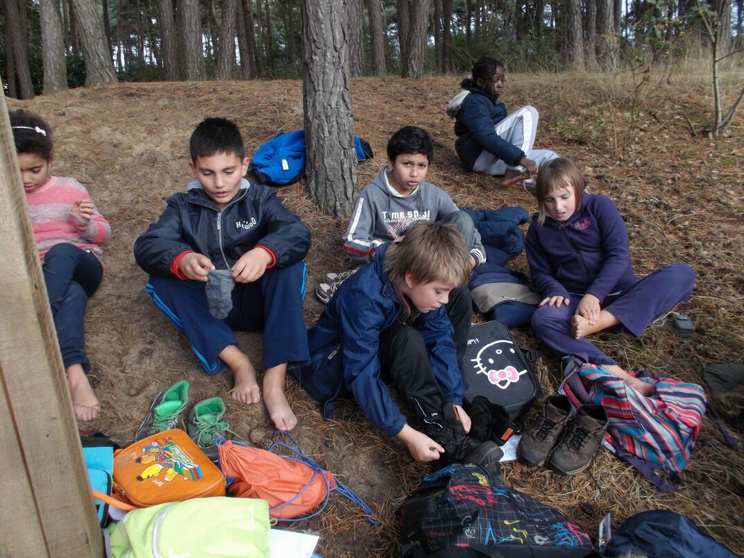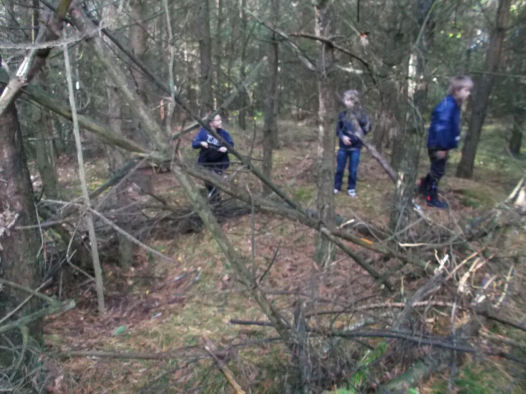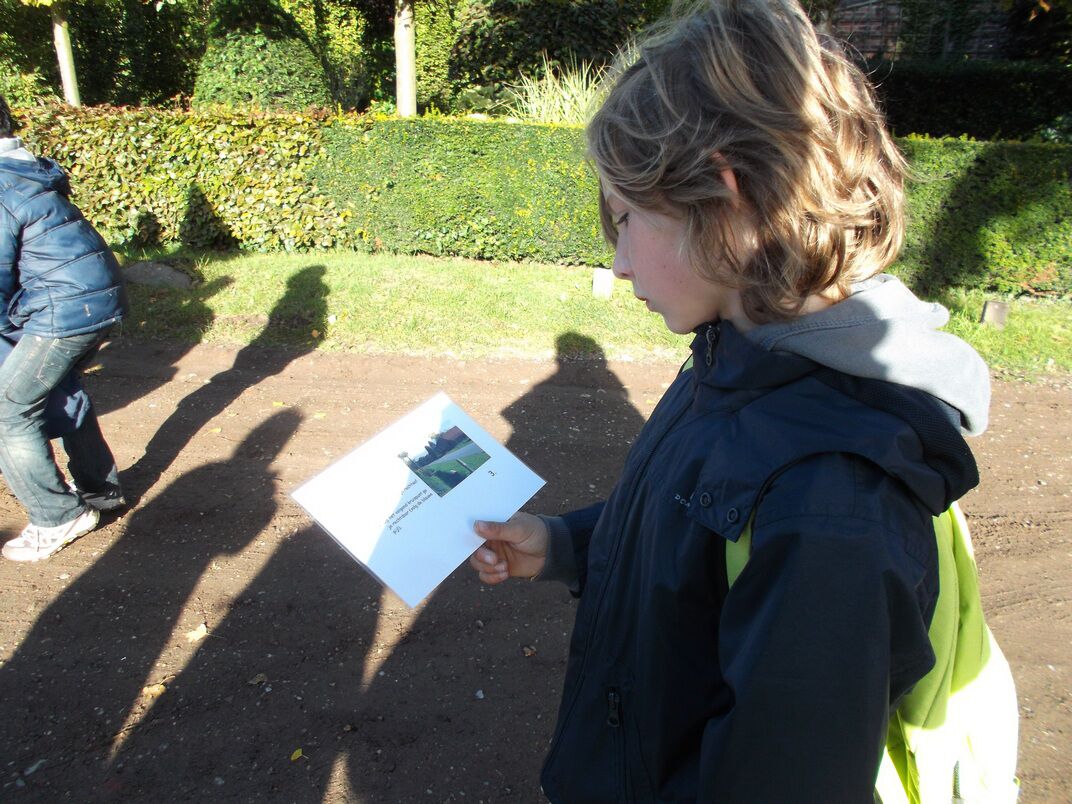 Onder een stralend zonnetje trokken we op speurtocht. We zochten onze weg aan de hand van foto's, maakten een windroos met natuurmateriaal en bouwden een kamp.