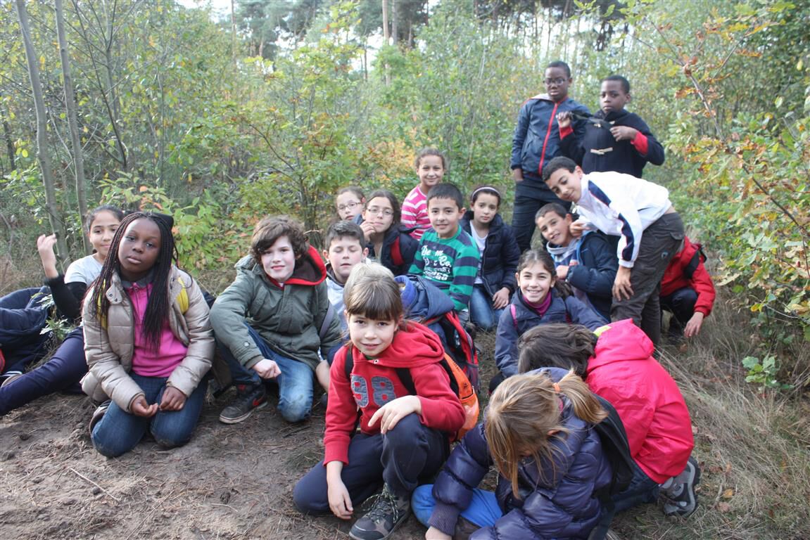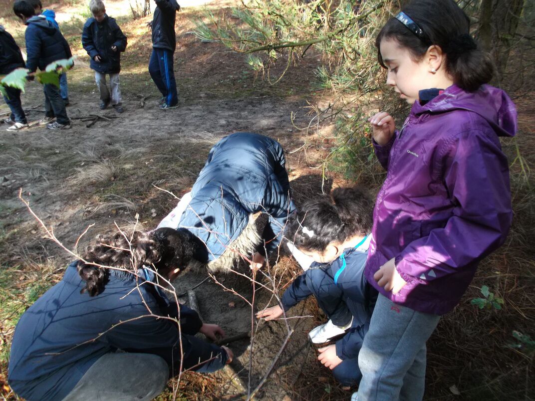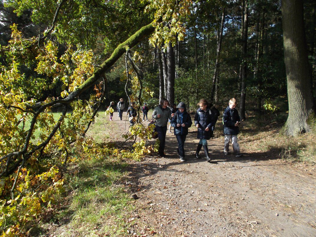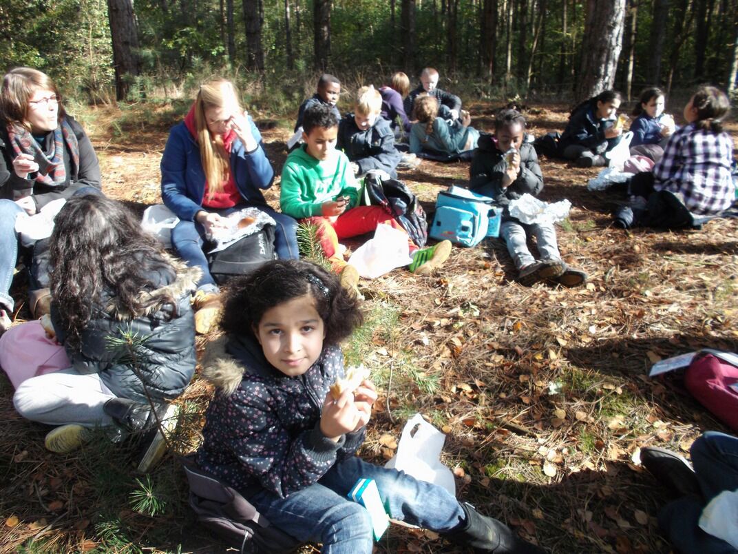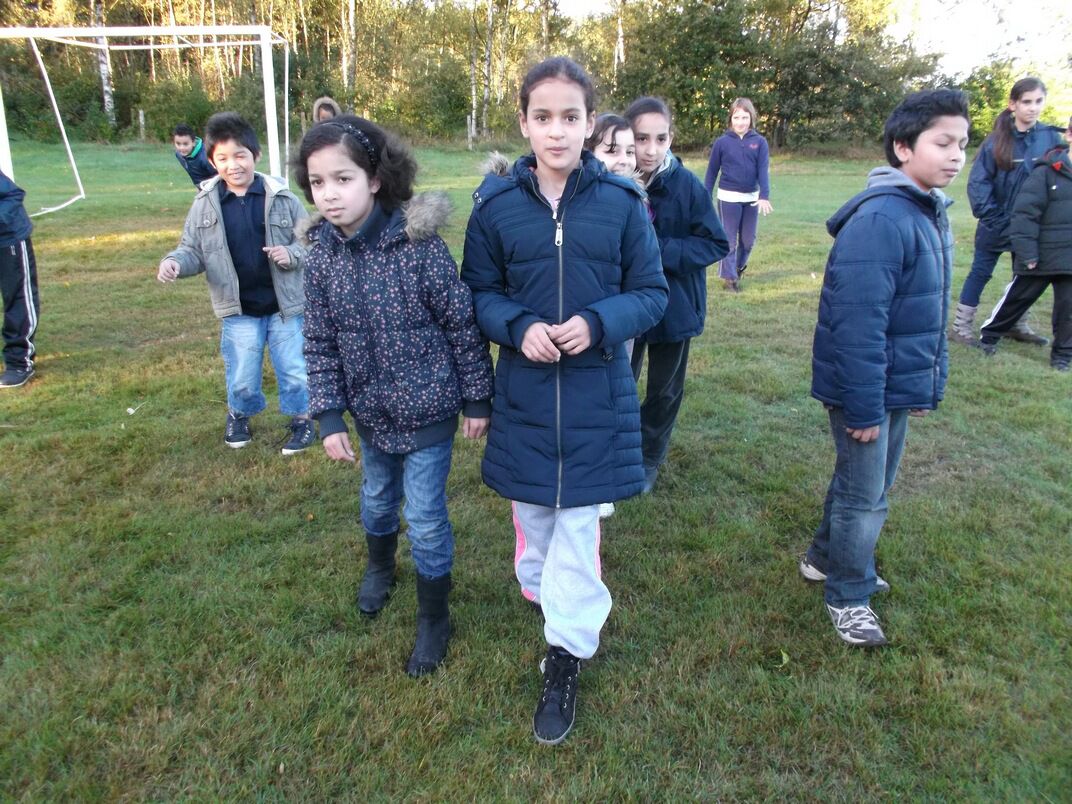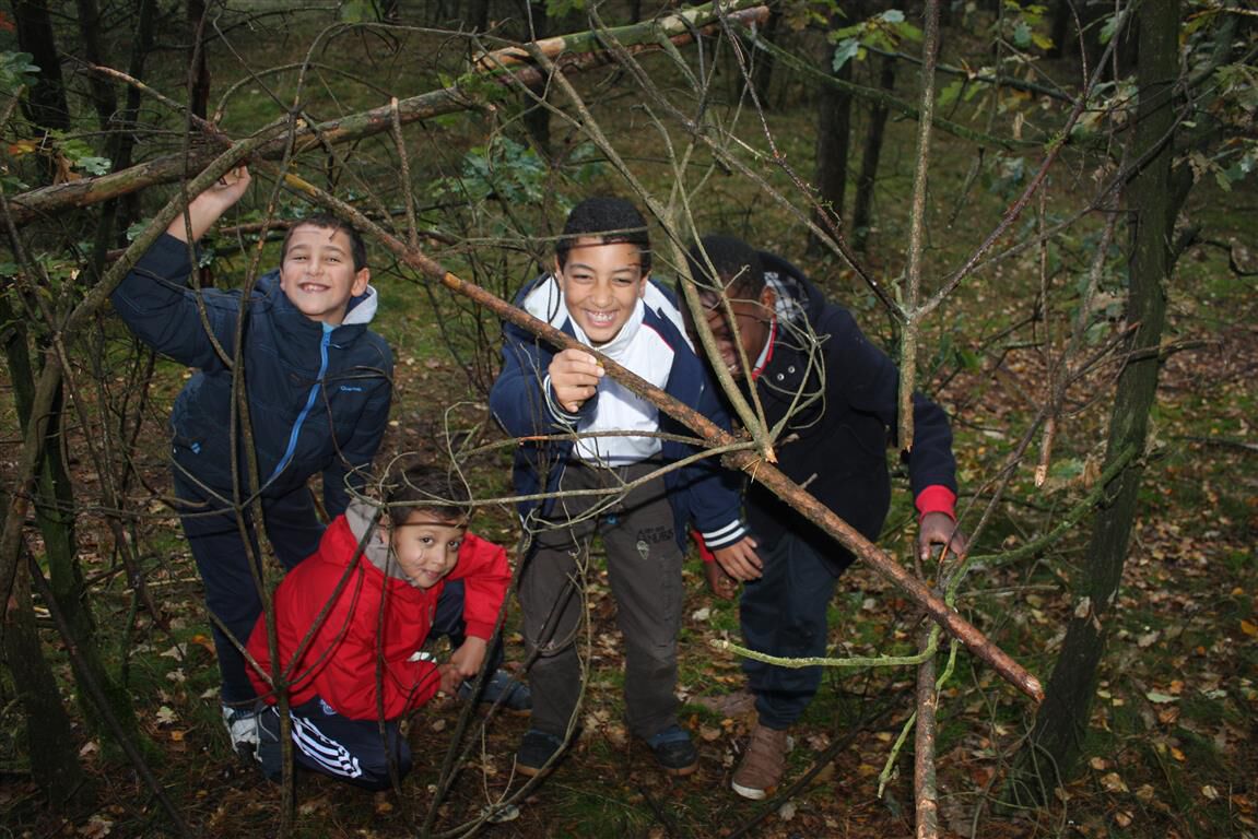 Onder een stralend zonnetje trokken we op speurtocht. We zochten onze weg aan de hand van foto's, maakten een windroos met natuurmateriaal en bouwden een kamp.