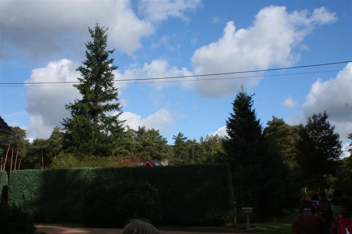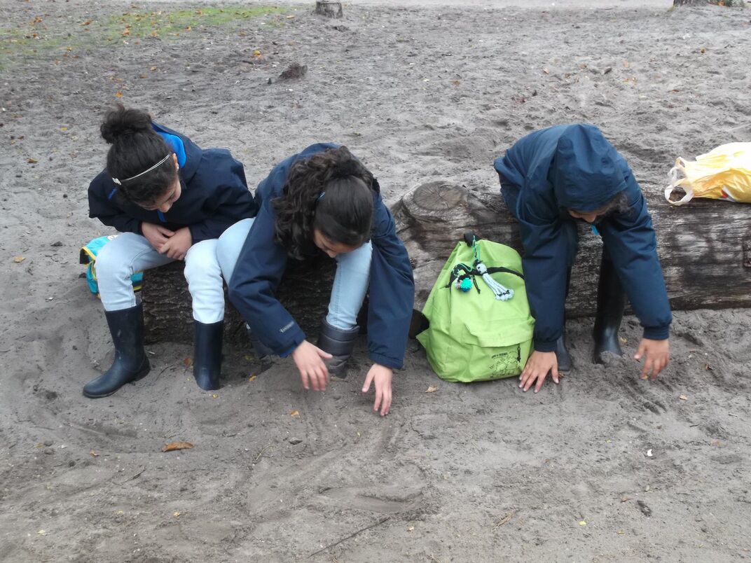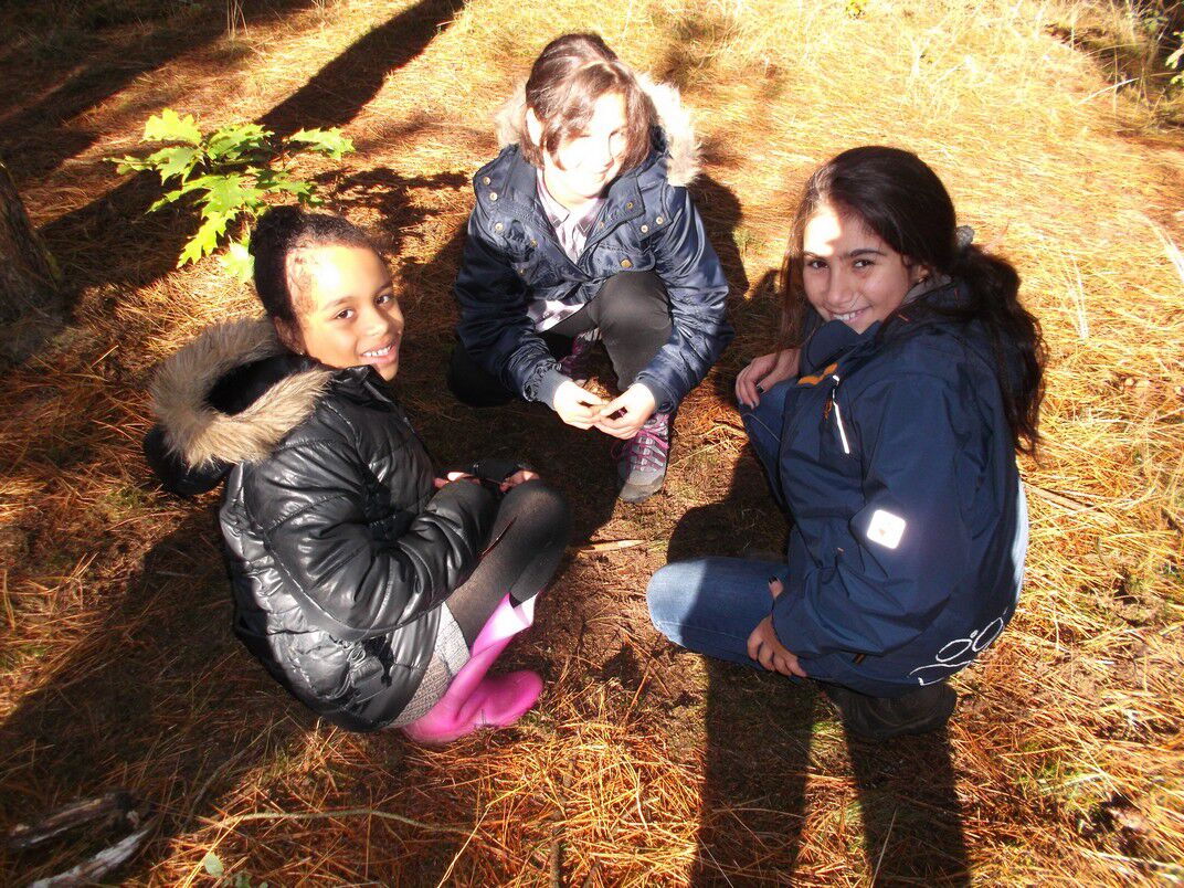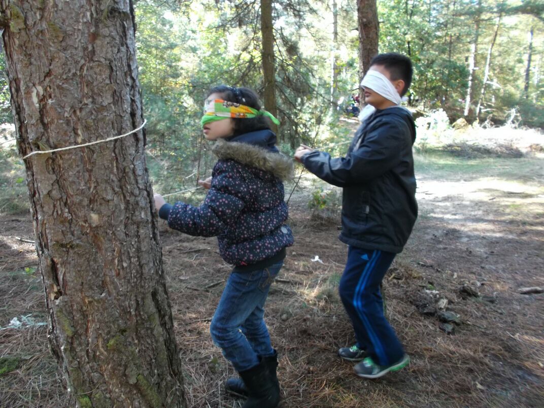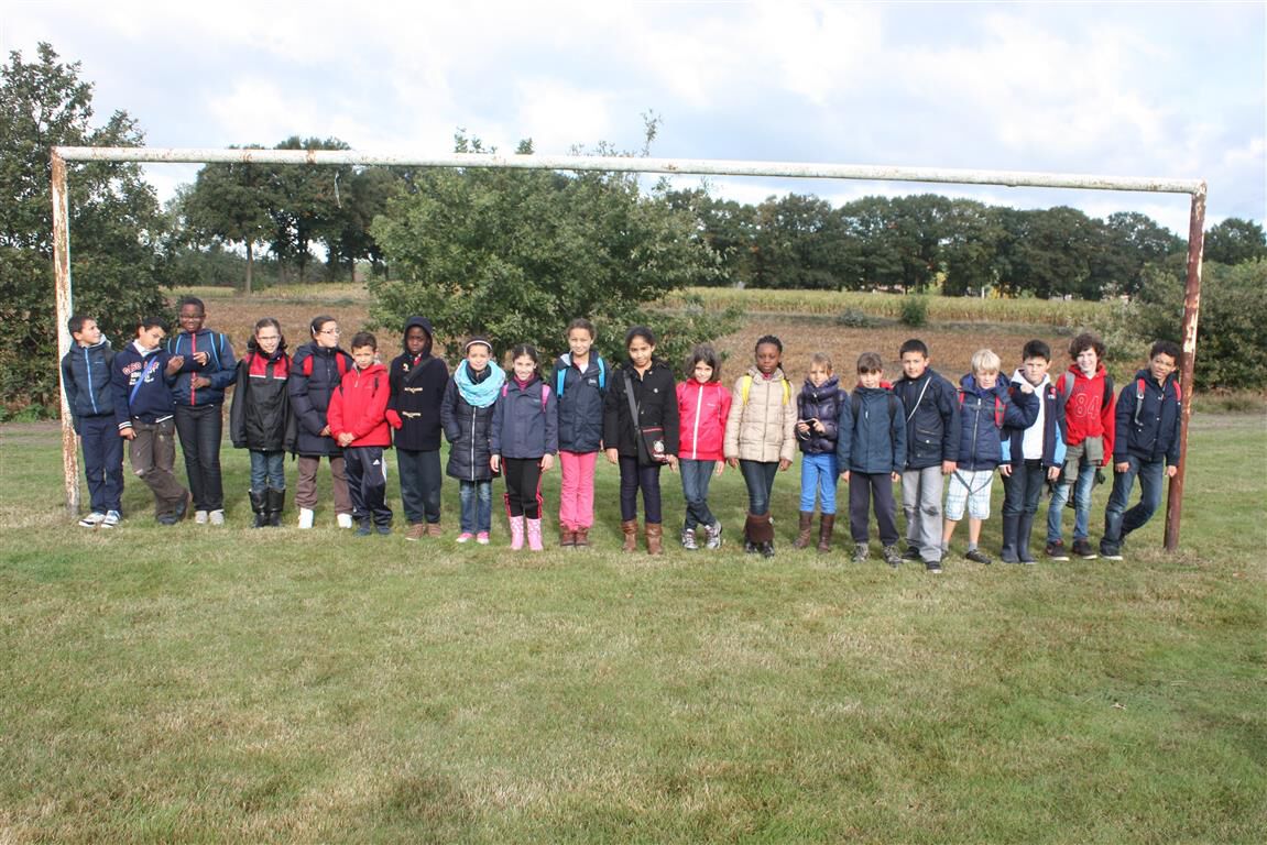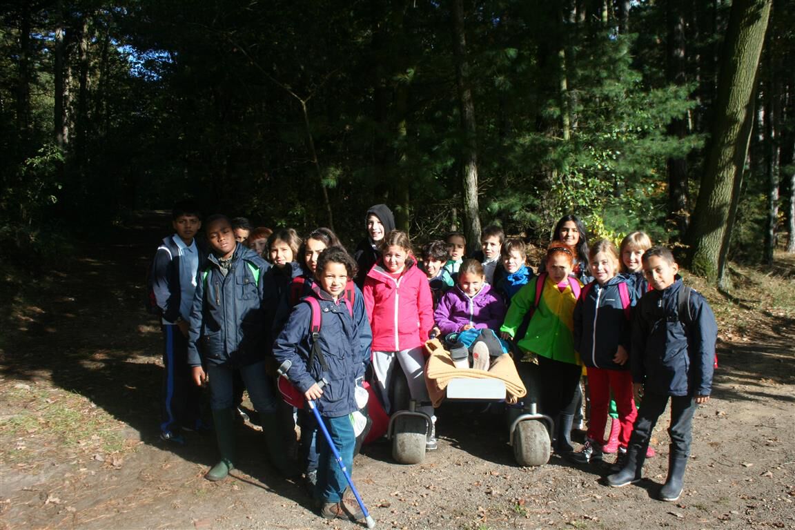 Onder een stralend zonnetje trokken we op speurtocht. We zochten onze weg aan de hand van foto's, maakten een windroos met natuurmateriaal en bouwden een kamp.