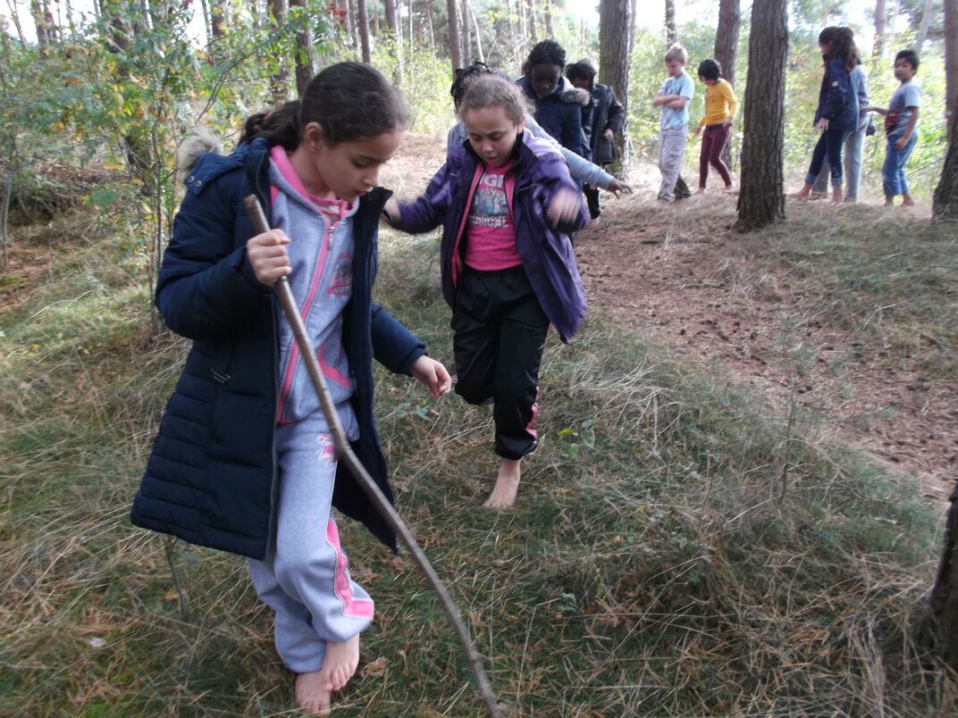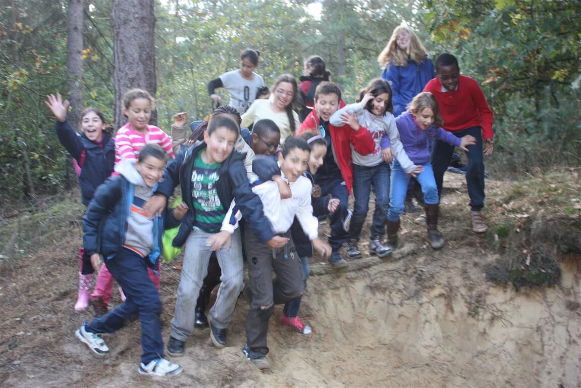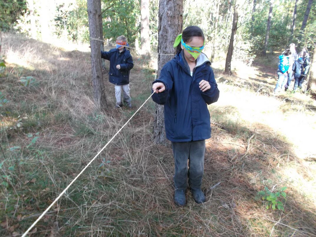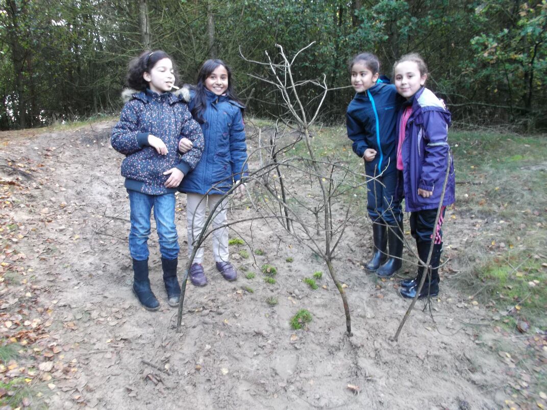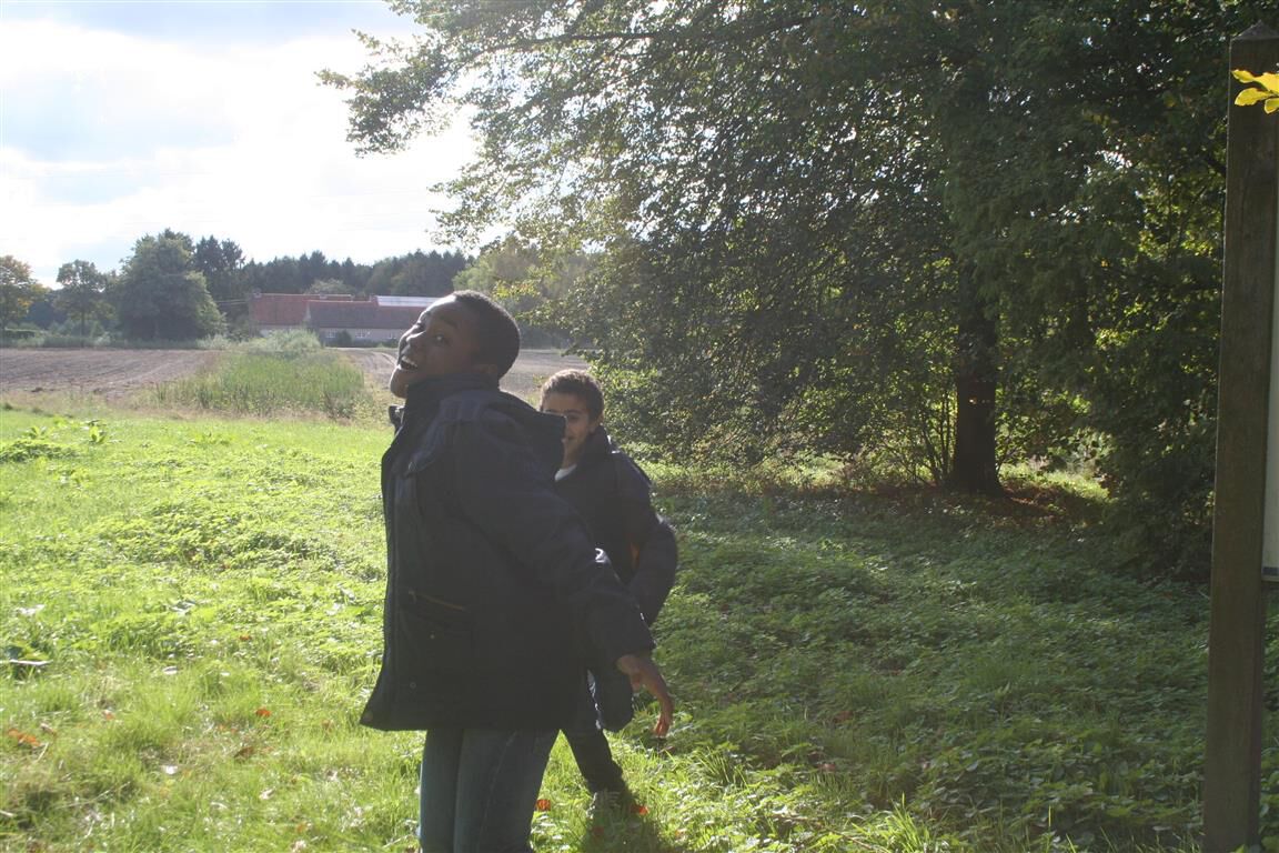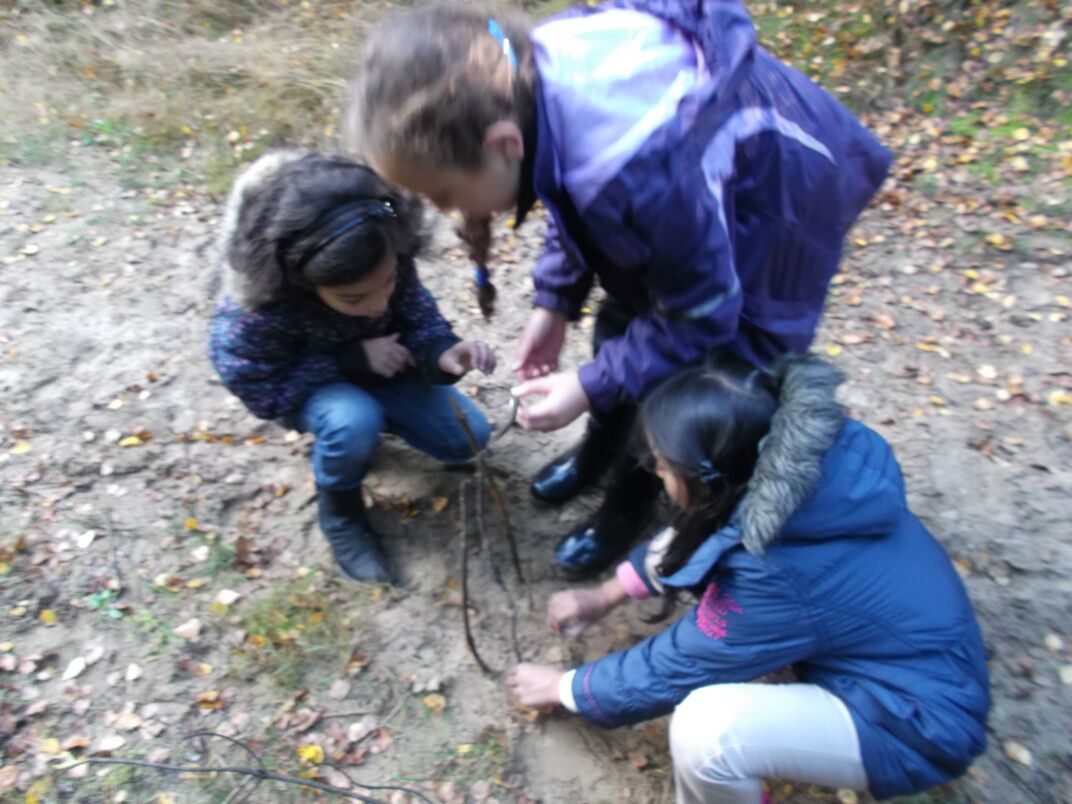 Onder een stralend zonnetje trokken we op speurtocht. We zochten onze weg aan de hand van foto's, maakten een windroos met natuurmateriaal en bouwden een kamp.