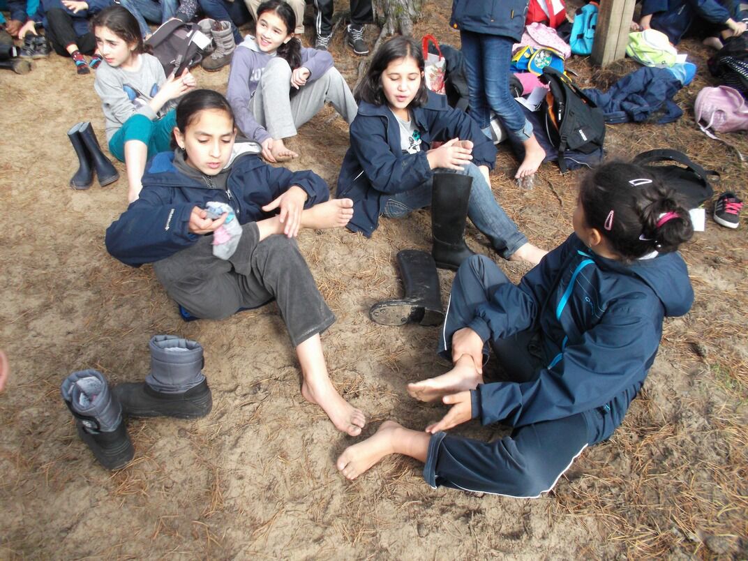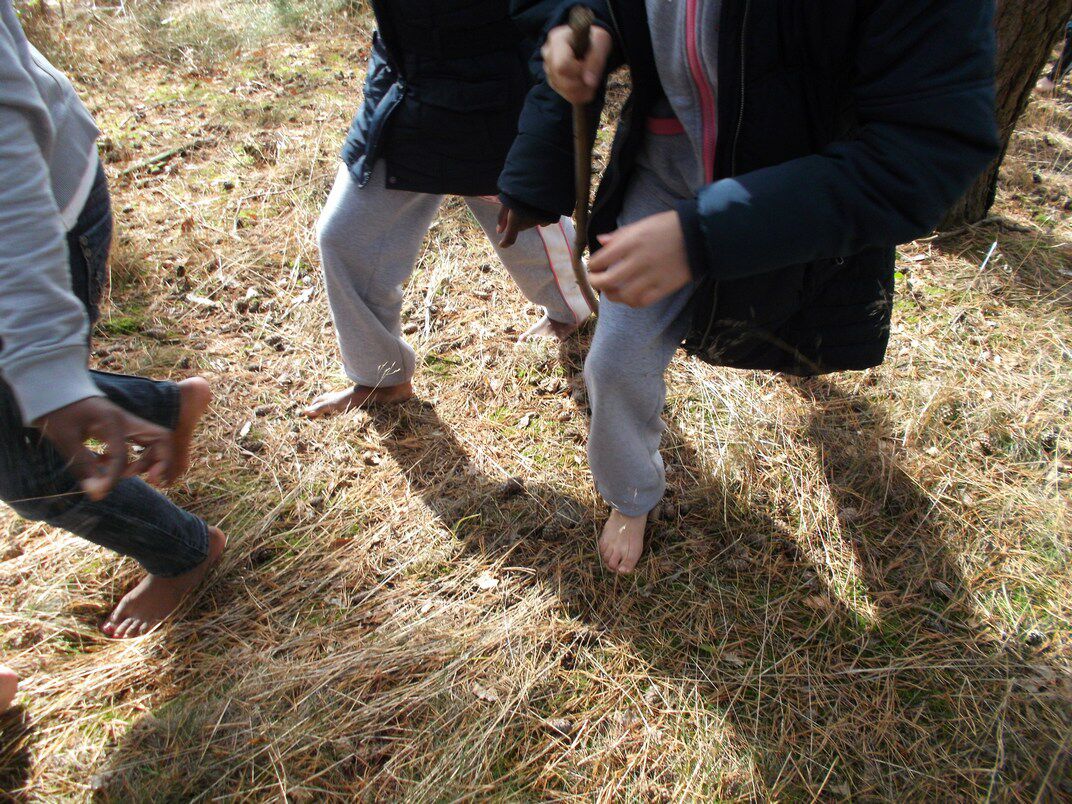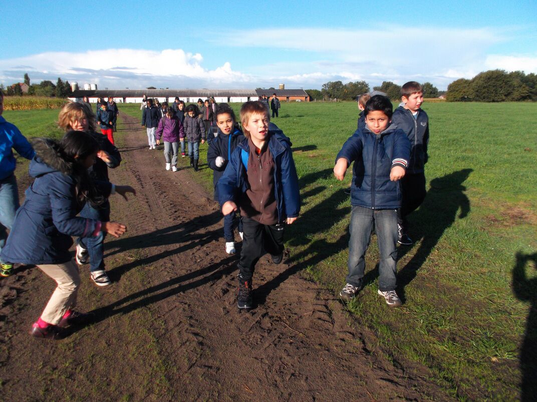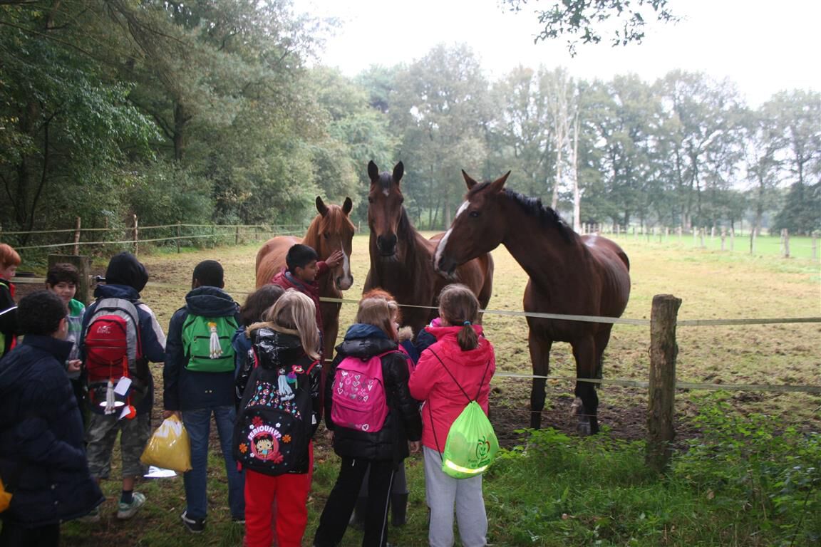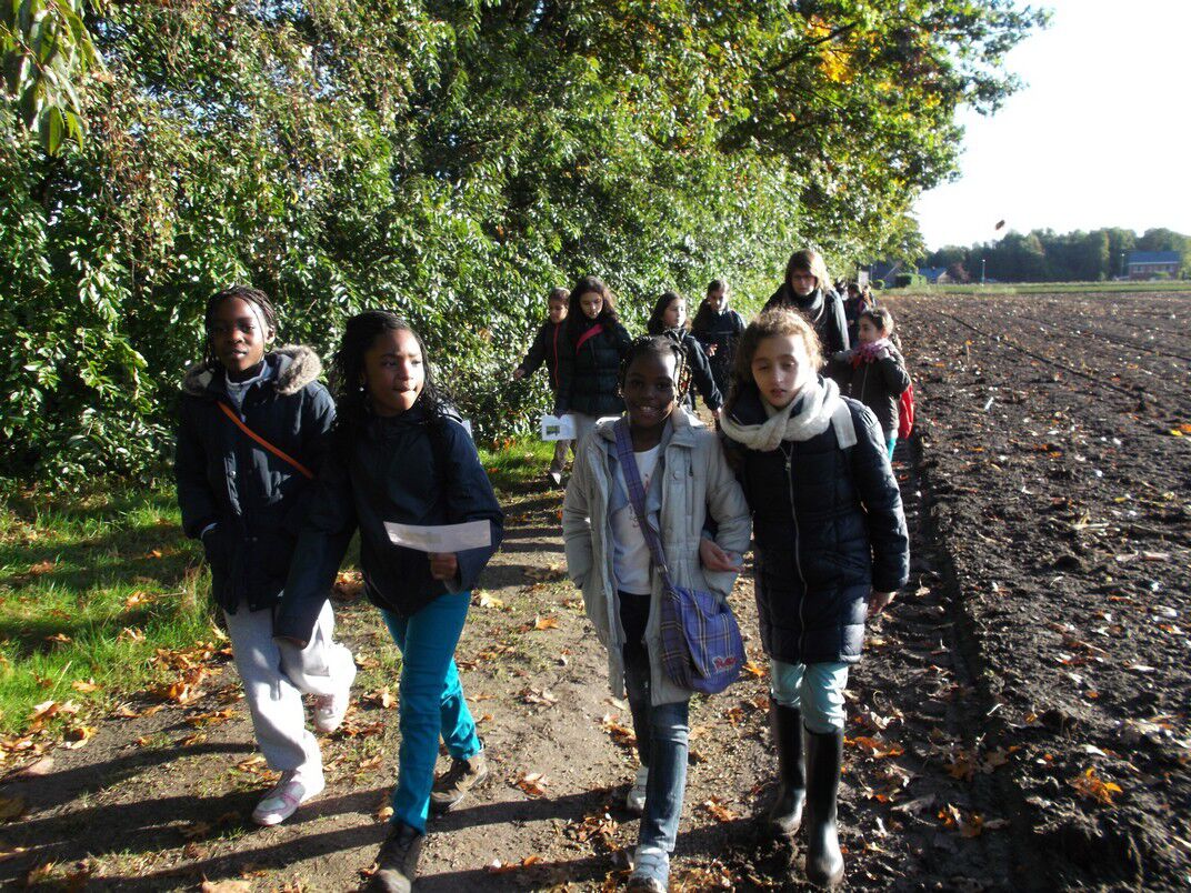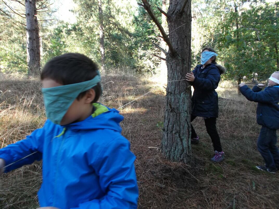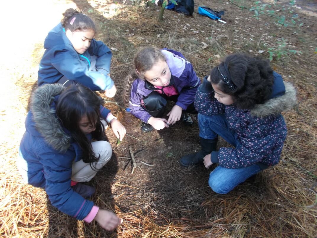 Onder een stralend zonnetje trokken we op speurtocht. We zochten onze weg aan de hand van foto's, maakten een windroos met natuurmateriaal en bouwden een kamp.