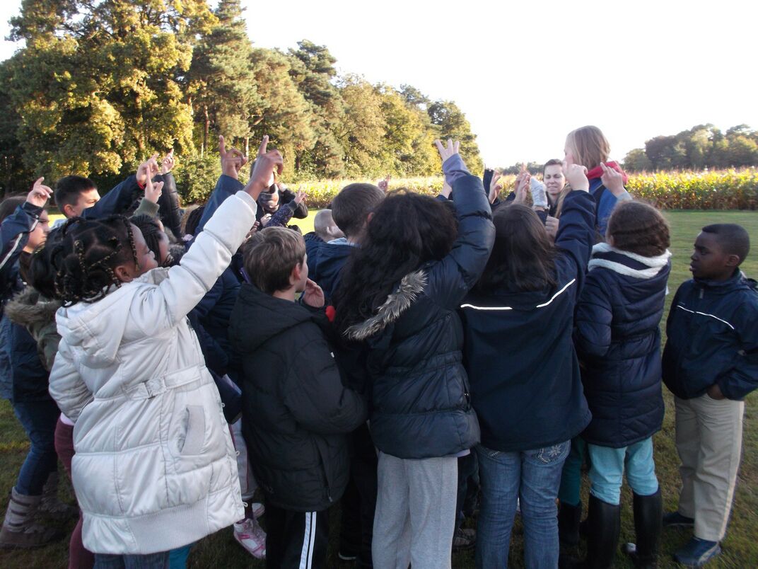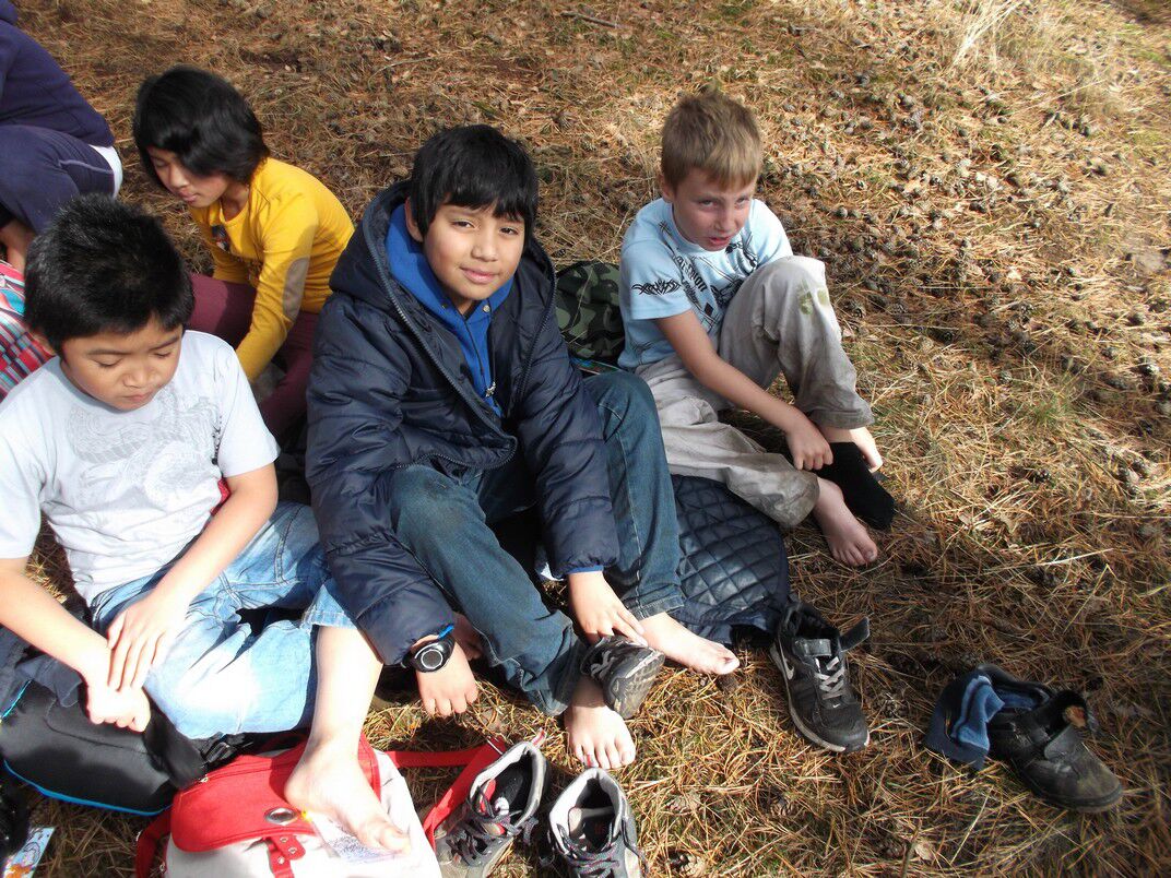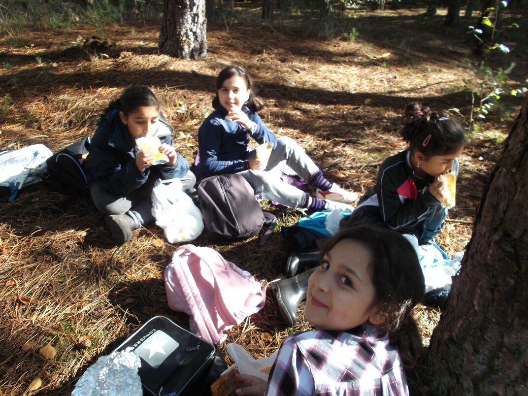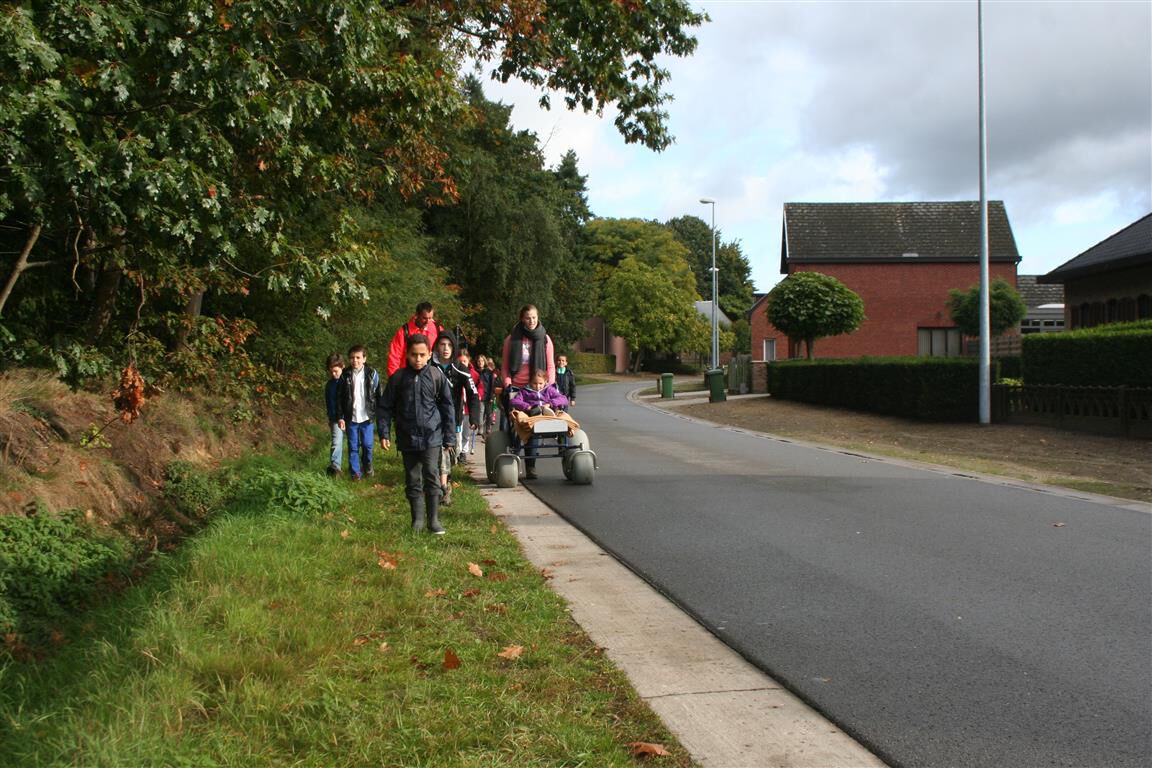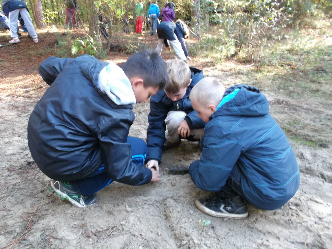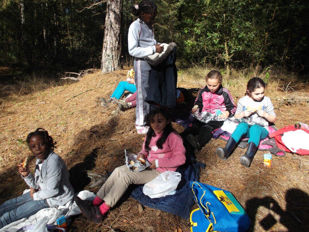 Onder een stralend zonnetje trokken we op speurtocht. We zochten onze weg aan de hand van foto's, maakten een windroos met natuurmateriaal en bouwden een kamp.