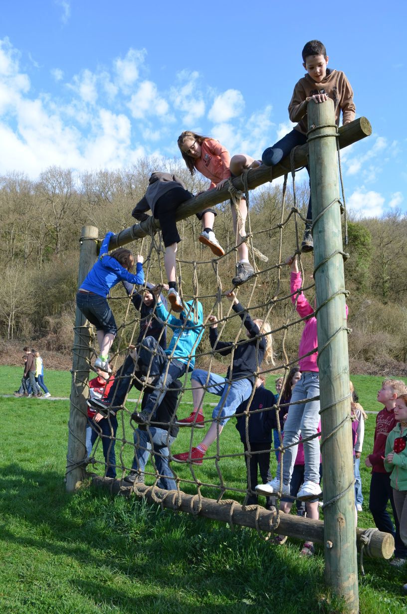 Het opstaan verloopt bij bepaalde leerlingen steeds trager en trager... Gelukkig hebben we dan het bosklaslied om wakker te worden. Vanmorgen gingen we trainen voor deze namiddag. We daagden een vriendje uit om het hindernissenparcours zo snel mogelijk af te leggen. Dat zorgde voor hilarische toestanden EN héél wat leerlingen verlegden hun grenzen (ook juf Drieke). We speelden ook nog jungle speed in 't groot en een loopspel met kaarten. Tegen dan was het tijd voor de aperitief. Na het smullen van de fishsticks mochten we gaan klimmen met Willem en Gilles. We zijn MEGATROTS op al onze leerlingen!! Nu zijn we de finale aan het spelen van het tussen-twee-vuren-tornooi. En straks ... gaan we FEESTEN! Het belooft dus een superleuke avond te worden!