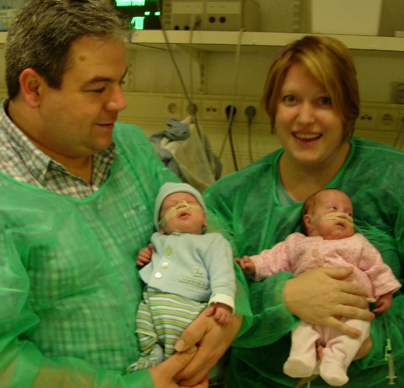 Het is alweer een tijdje geleden maar alles gaat zo snel. Ella en Vince liggen niet meer in couveuzekes. Ze hebben deze ingeruild voor bedjes. Bijgevolg mogen mogen we ze nu zelf alle dagen in bad doen, kleedjes aandoen en flesjes geven. Ja, de laatste weken hebben de zuigreflexen zich zo ontwikkeld dat broer en zus mooi hun flesjes opdrinken en dat binnenkort de maag-sonde niet meer nodig zal zijn. Dat begint al aardig te lijken op de laatste fase van hun verblijf in Leuven. Mama en papa doen momenteel al het nodige om de thuiskomst voor te bereiden. wij weten dat als de kindejes klaar zijn om naar huis te gaan dat de dokters dit hoogstens één dag op voorhand zeggen. Wij hebben al ouders in dezelfde situatie zien paniekeren als ze dit te horen kregen. (Sandy)