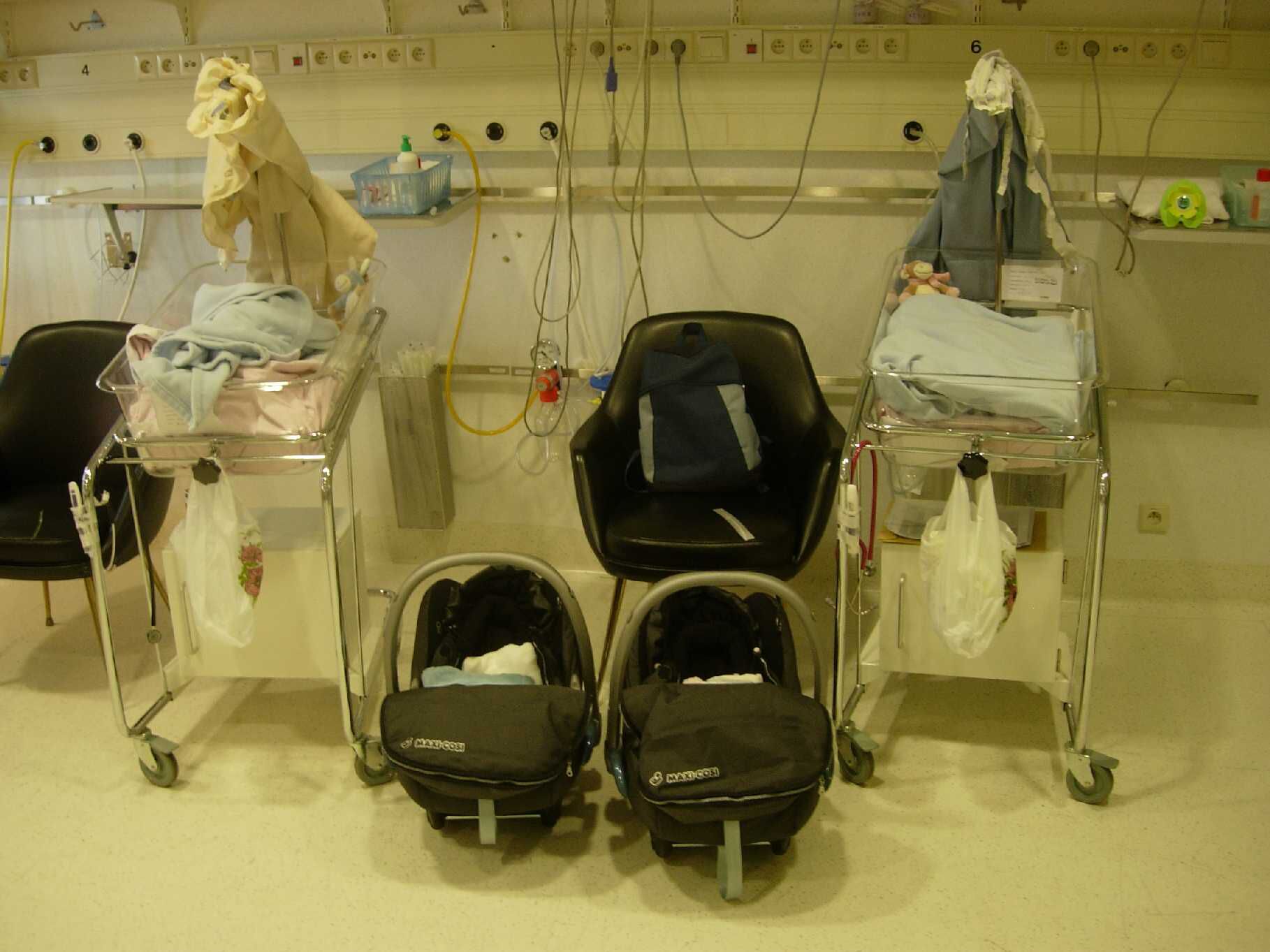 Hoera, Gisteren zijn we alle twee acht uur opgevolgd door een computer die zowat alles registreerde. Hartslag, ademhaling, saturatie enz. Uit de resultaten van deze laatste test is gebleken dat we volledig geschikt zijn om het ziekenhuis te verlaten en bij papa en mama te gaan wonen. Vele mensen zullen deze test beter kennen als de registratie aangaande wiegedood. Uit de resultaten blijkt dat zowel Ella als Vince juist ademen en dat er bijgevolg geen verhoogd risico is op wiegendood. Er is dus ook geen behoefte meer om de ademhaling en hartslag nog verder te volgen met de monitors. Weg met die laatste kabeltjes, leve de vrijheid van bewegen, joehoe.