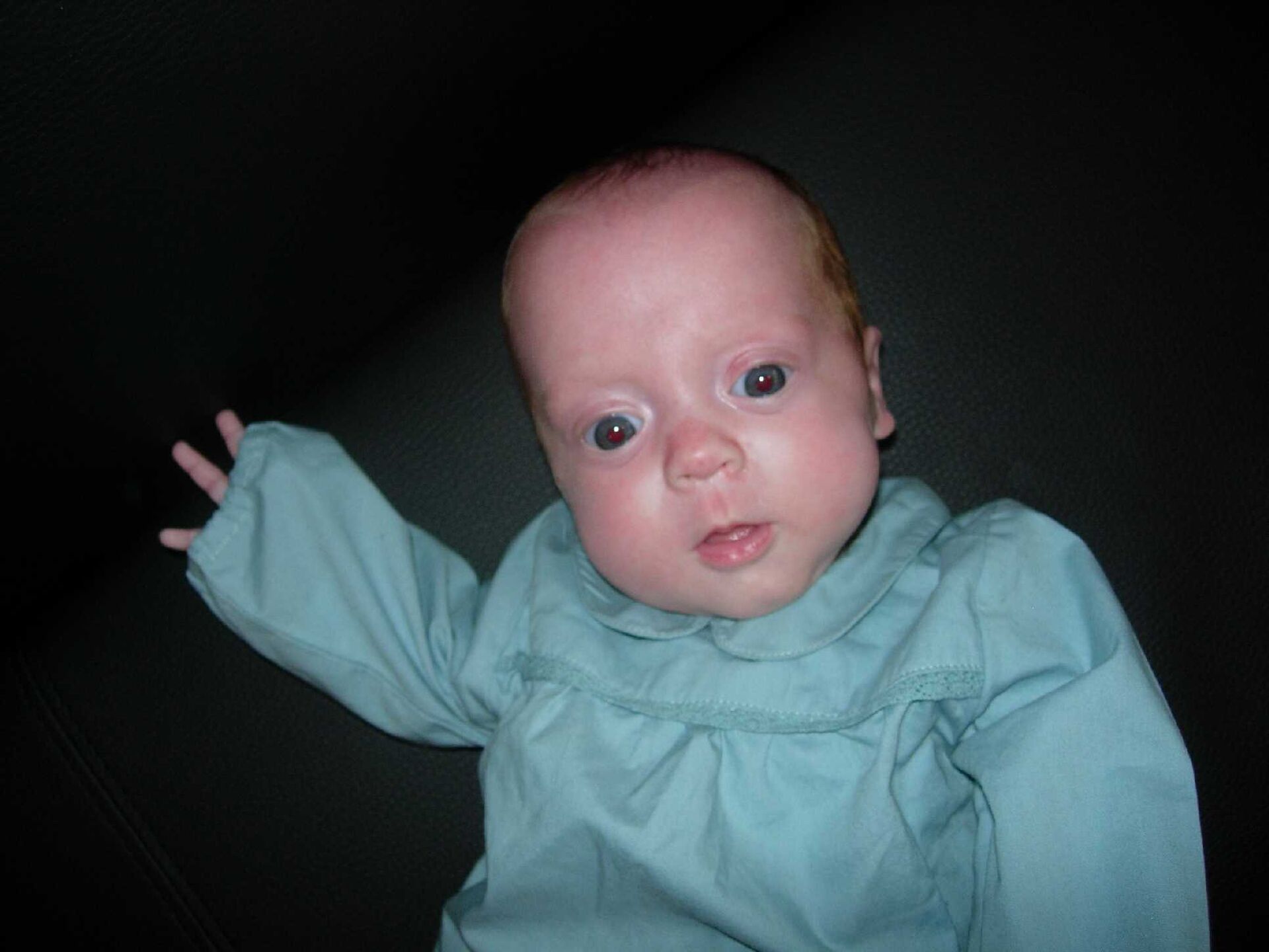 Als je zo klein bent is het veel te lang wachten op je eerste ver-JAAR-dag. We tellen dus voorlopig het aantal ver-MAAND-dagen. Vandaag word ik 4 MAAND, en mijn broer ook natuurlijk. Om met mijn vingers te laten zien hoeveel "4" is zal je moeten wachten tot ik 5 maand ben. Niet omdat ik dat nu nog niet kan maar omdat tegen dan mijn bloes niet meer te groot is.... (Ella)