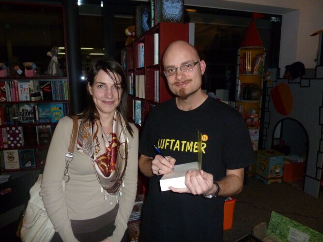De lezing van Oliver Uschmann gisterenavond was een succes, met dank aan de humoristische auteur. Oliver Uschmann las stukken uit het boek en vertelde dan waarom hij die passage geschreven heeft en gaf wat meer duiding aan de gebeurtenissen. Eigenlijk kon je echt meekijken in het hoofd van een auteur. De lezing duurde ongeveer twee uur en half. Daarna konden de gasten aanschuiven voor hapjes en drank. En die hapjes waren heerlijk! Zalmboter en andere lekkernijen en dan broodjes om al dat lekkers op te smeren. Allemaal zelf gemaakt door Frau Saabel (behalve het brood). Wat zou ik die recepten graag bemachtigen! Na het opruimen wandel ik huiswaarts. Als ik thuis op de klok kijkt is het al na elven Maar snel bedje in morgen weer een nieuwe werkdag.