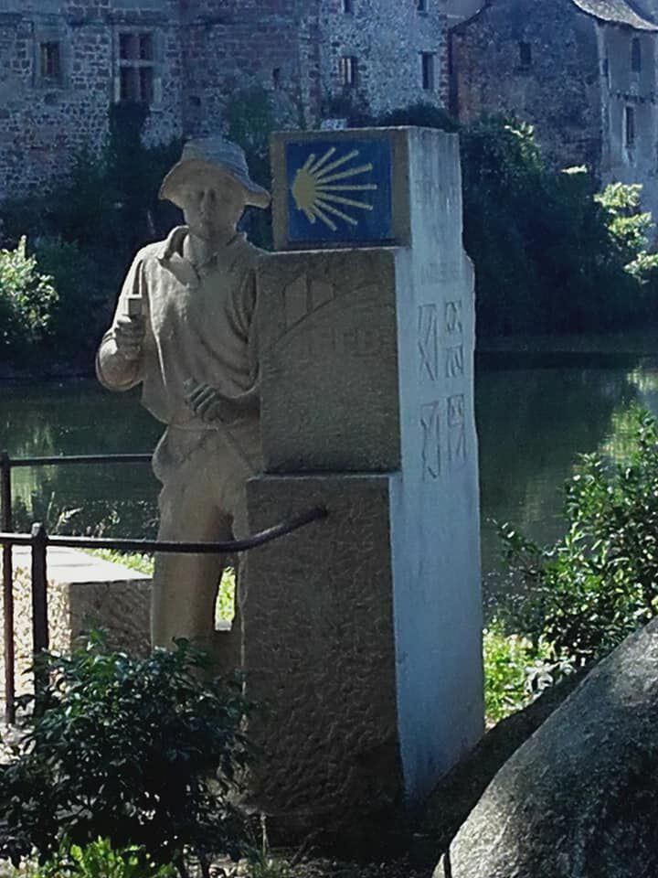 Vanmorgen dus om 8u30 vertrokken na een lekker ontbijt met oa zelfgemaakte bananen/kiwi konfituur. De eerste 12 km zijn niet van de poes. De klim naar Saugues, 12 km lang, 500 hoogte meters overwinnen, mag er zijn. De imposante Saint Medard kerk valt direct op. Zoals gemeld brand ik er de eerste kaarsjes van de dag. Hier in Frankrijk zijn het trouwens echte kaarsen, niet van dat electronisch gedoe zoals in de meeste grote kerken in Spanje. Wanneer ik de kerk verlaat woedt ik opgewacht door een oud vrouwtje. Zij neemt me mee naar haar bureeltje om mij te voorzien van de originele stempel. Ze vertelt me dat ik nu het lastigste stuk van de via Podiensis achter de rug hebt. Als ze hoort dat ik verder wandel richting Le Sauvage waarschuwt ze mij dat het daar ook in deze periode vrij koud kan zijn. Saugues is verder ook gekend als klompenmakers stad en van de legende dat de stad einde achttiende eeuw geterroriseerd werd door een wolf. Deze zou honderden vrouwen en kinderen hebben verslonden alvorens hij gedood werd door een plaatselijk held. Er is een museum gewijd aan deze gebeurtenissen. inmiddels wandelen we verder naar La Sauvage , terwijl het in tegenstelling tot wat het oude vrouwtje vertelde, steeds warmer wordt. Van Saugues naar Le Sauvage is het 20 km vals plat, richting de Montagne de Margeride, 1300 m hoog. Heerlijk, doch ook niet te versmaden.