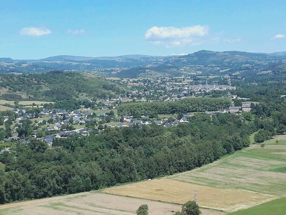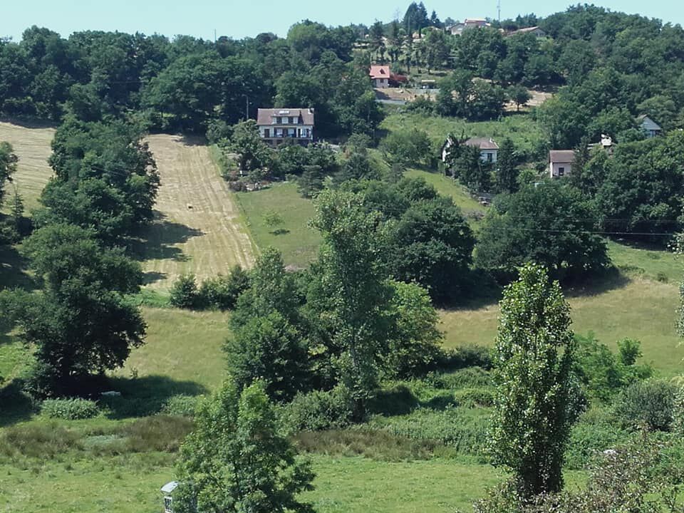 Wat verder staat een prachtig huis te koop met een oninneembaar zicht op de Aubrac heuvels. Het zet me aan het dromen...tot ik in Lasbros, na 7 km, bijna uit mijn sokken wordt weggewaaid door een laag overvliegende jet. Wat een hele kabaal ook. Waarschijnlijk is hier ergens in de buurt een militaire basis.