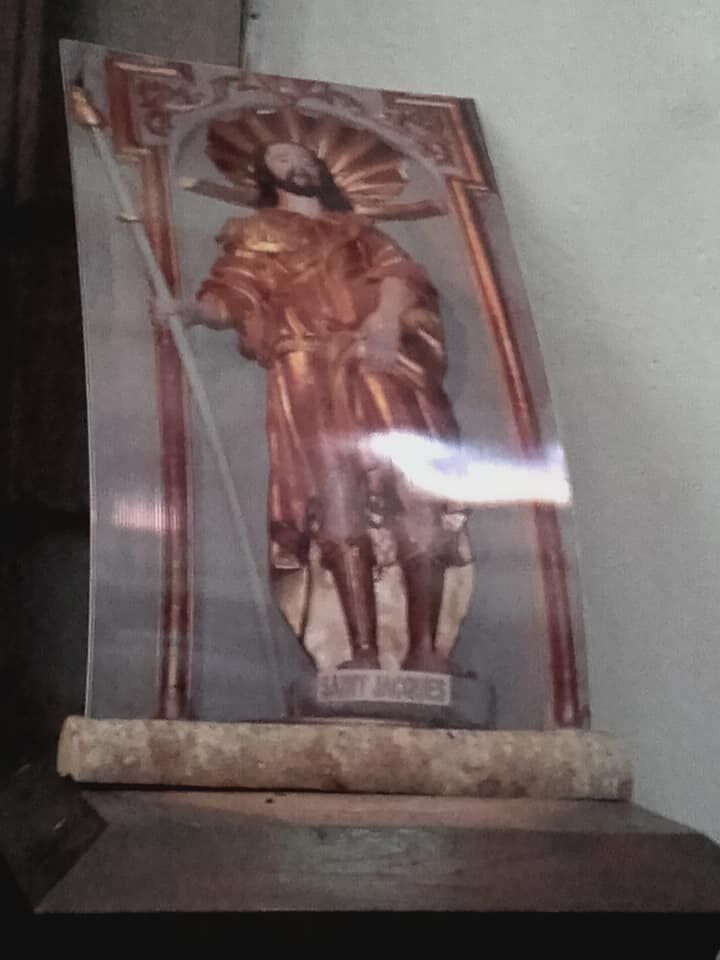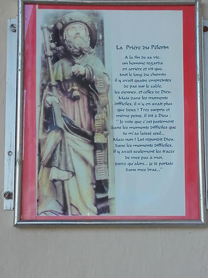 Om half acht vertrek ik en houd direct halt bij de prachtige kerk van Espalion. Bij de beeltenis van Sint Jacobus steek ik het eerste kaarsje van de dag aan. Speciaal voor mijn oudste zus Ingrid en haar Jozef, die een beetje sukkelt met zijn gezondheid. Zij was de eerste om mij om 8 u een bijzondere vaderdag te wensen.