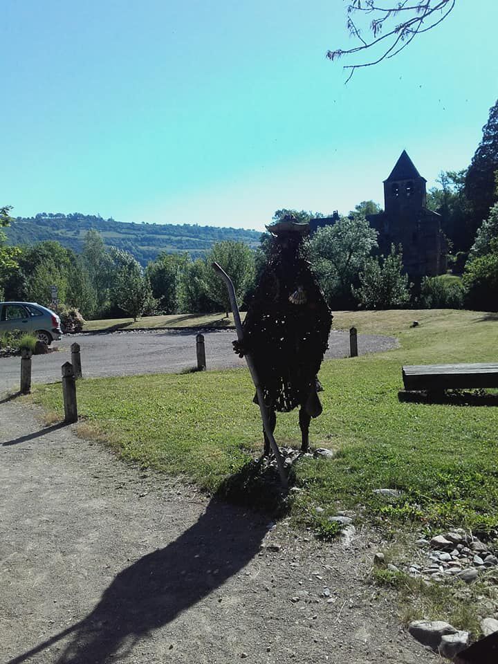 Bij het verlaten van de kerk bots ik opnieuw op het Franse koppel uit Parijs. Dit is nu de derde dag op rij dat onze pelgrimswegen elkaar kruisen. Ook zij wandelen door tot Espalion. Zij nemen de variante route zonder hoogte verschillen.