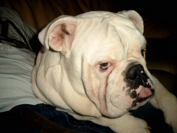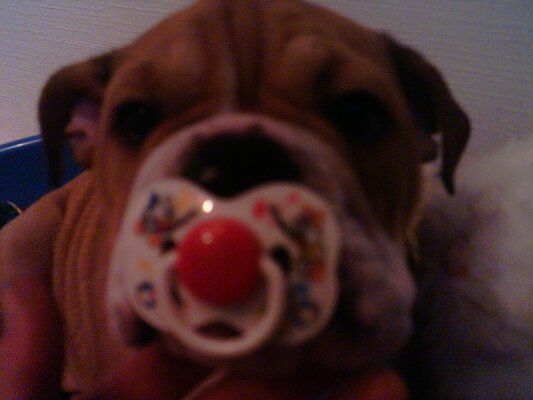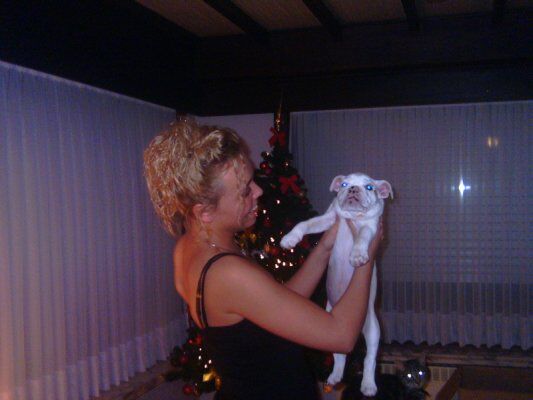 ik ben Elke en ik ben zowaar bezeten door engelse bulldoggen. Daarom heb ik er mij ook 2 aangeschaft. Een teefje genaamd Emily en3 jaar jong en een reutje genaamd Homer 2 jaar jong. Ik heb zo een passie voor deze hond omdat ze zo vriendelijk aanhankelijk en supertrouw zijn en ook vooral omdat ze zeer kindvriendelijk zijn. Hun uiterlijk staat mij ook erg aan: 'ze zijn zo lelijk dat ze mooi zijn'. ik heb nu een 2de nestje pups in totaal zijn het er maar liefst 7. 4 teefjes en 3 reutjes. Ze zijn 23/05/08 geboren rond de middag met een keizersnede. Het was een spoedkeizersnede omdat mijn Emily haar baarmoeder was gescheurd omdat de pups te zwaar waren. Dit is dan ook mijn laatste nestje dat ik met Emily heb ik gedaan want ik heb haar steriel laten maken om bloedingen van te baarmoeder te voorkomen. Alles voor mijn schatjes he... Ik heb 2 honden omdat ik ze heel gezellig vind en omdat ze met 2 het ook heel aangenaam hebben. Deze honden zijn niet geschikt om buiten in een kennel te stoppen, ze zouden zich verwaarloosd voelen en zouden wel eens vernielenszuchtig kunnen worden. Het is dus een echte familiehond die erbij wil horen. Deze hond kan je zowaar vergelijken met een kind, met een koekje en een knuffel zijn ze al heel tevreden en ze laten dit dan ook blijken. Een teefje is meer aanhankelijker aan de baas en zal ook meer opkijken naar de baas omdat zij hun aanzien als leider van de roedel. Een reutje daarentegen is meer dominanter en wil soms zelf baas zijn als ze daar de kans toe krijgen, daarom is hier een degelijke opvoeding echt wel nodig. Als je er een echte band mee hebt gebouwd en wanneer ze je vertrouwen hebben gewonnen zijn het de trouwste maatjes dat je je kan voorstellen. Ik ben gek op alle soorten honden maar deze hond springt er toch wel op en top bovenuit vanwege hun menselijke karakter. Let wel goed op als je zo een hond aanschaft dat hij/zij bij je karakter past, ga een aantal keren langs bij de fokker om de pups te leren kennen. Koop niet bij de eerste de beste fokker een pup. En let op deze hond moet je echt als familie behandelen. Ik behandel ze echt als mijn eigen kindjes zijn. Qua verzorging is er niet veel werk aan. Wel hun jaarlijkse spuitjes, maar dat is bij iedere hond. Hun plooien in hun gezicht moet je wel regelmatig verzorgen met steriel water. En het beste is de honden goede harde brokken te geven om een gezond gebit te behouden. Kauwmateriaal afkomsting van de koe/buffel best niet geven hier kunnen ze in stikken. Ik hoop dat ik je een beetje info heb kunnen meegeven, vragen zijn altijd welkom. En als je intresse hebt voor een pupje, kan je altijd vrijblijvende info aanvragen... Met vriendelijke groeten Bulldogfamily Ps ik zal jullie ook over de gebeurtenissen van de pups regelmatig op de hoogte blijven houden.