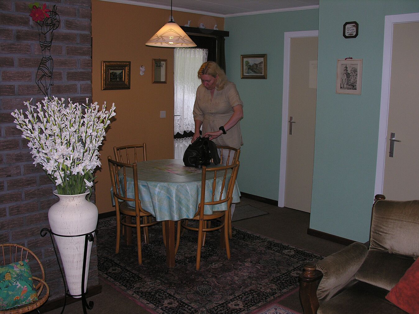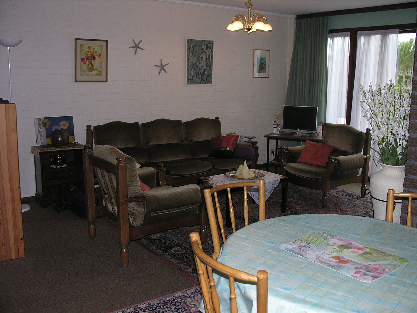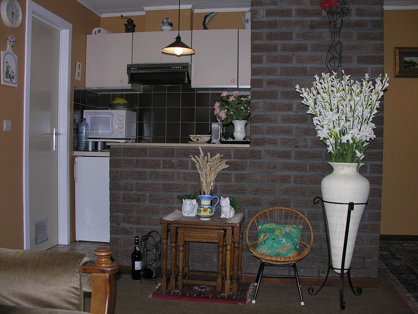 een kleine) living (zijn nu lederen meubels) keuken (microgolf koelkast gasfornuis senseo
