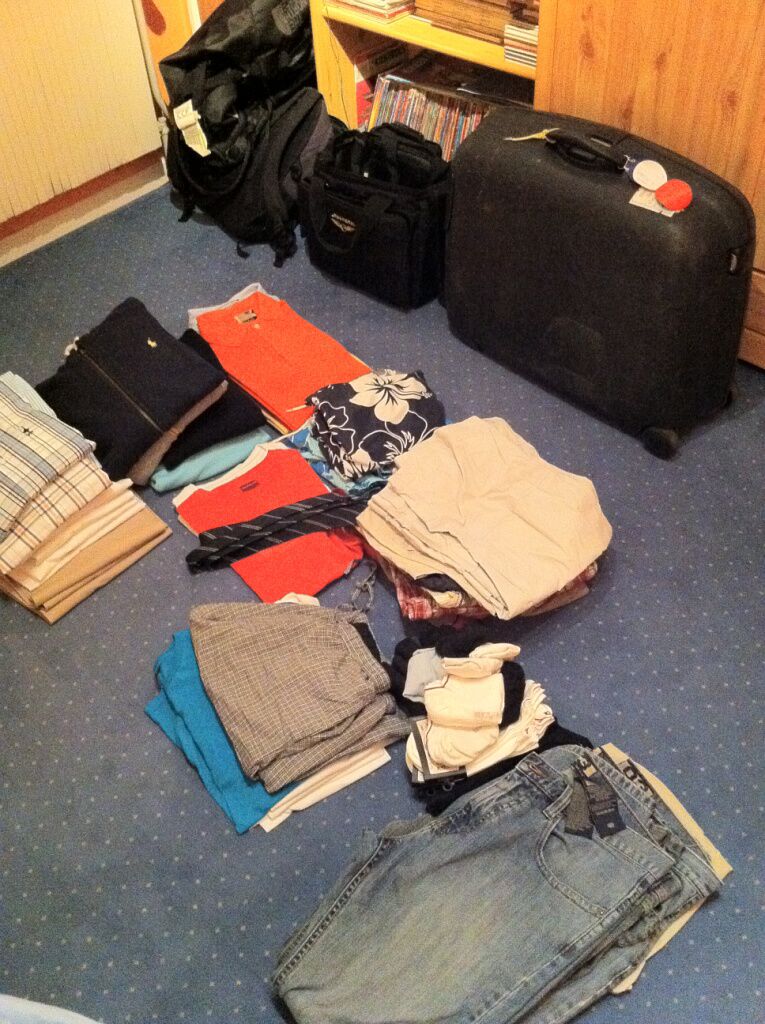 Bij deze ben ik dan ook bijna klaar om donderdag de grote oversteek te maken. Alvast een fototje van de spullen die klaarliggen om mee te pakken