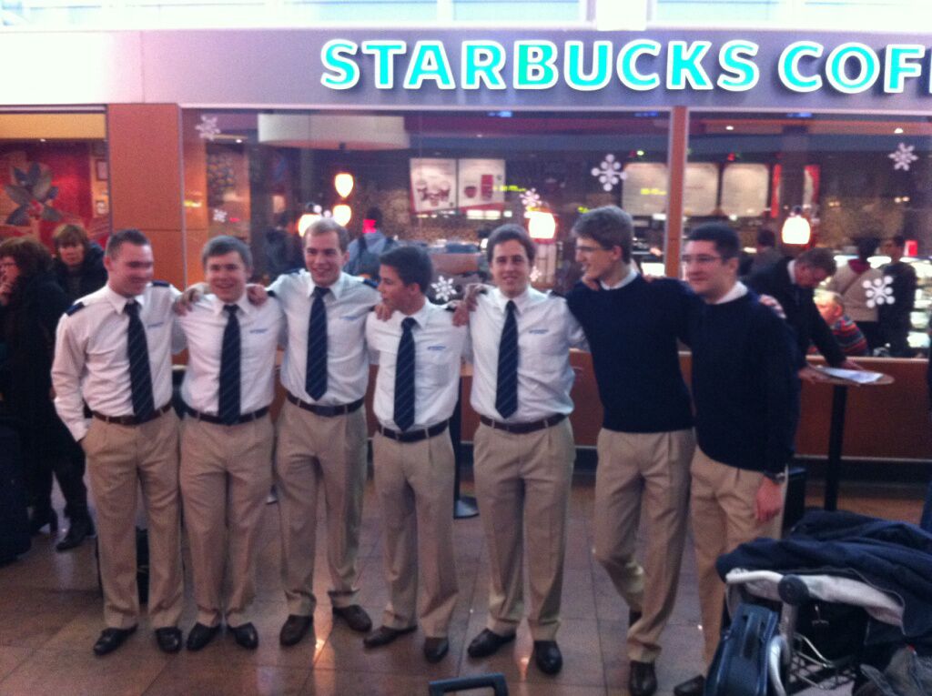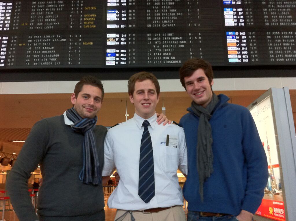 de Starbucks van Brussels airport. Mijn papa, Wesley en Evert me komen