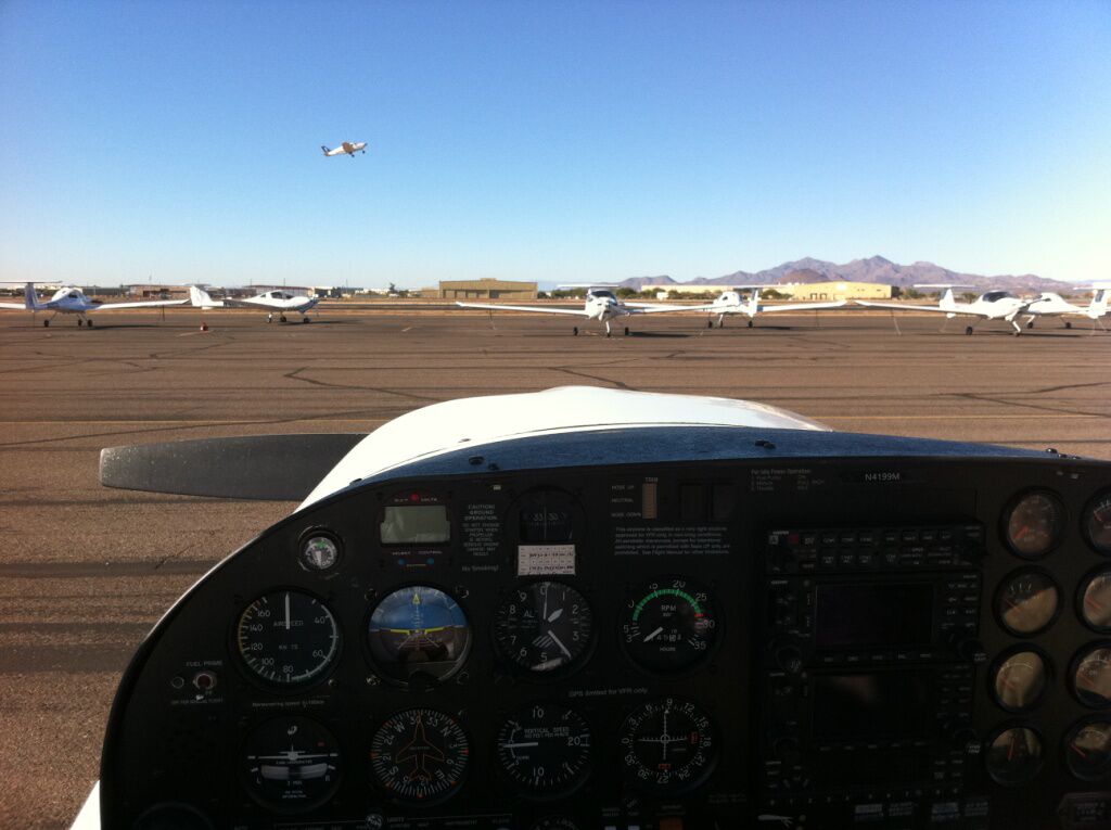 Inmiddels al 4 missies gepasseerd, morgenvroeg nummer 5. 'T gaat razendsnel!! Zo zal ik morgenvroeg naar Coolidge gaan, een kleiner ongecontroleerd vliegveldje, en daar wat circuitjes gaan draaien. Vrij intensief in het begin, temeer omdat je alles snel aangleerd moet krijgen! Zo maak je hele tijd landingen, en go-arounds. En verder nog veel checklists die je moet aframmelen. Een uurtje lang. Zien wat dat gaat geven! Het is een kwestie van de routine er wat in te krijgen!
