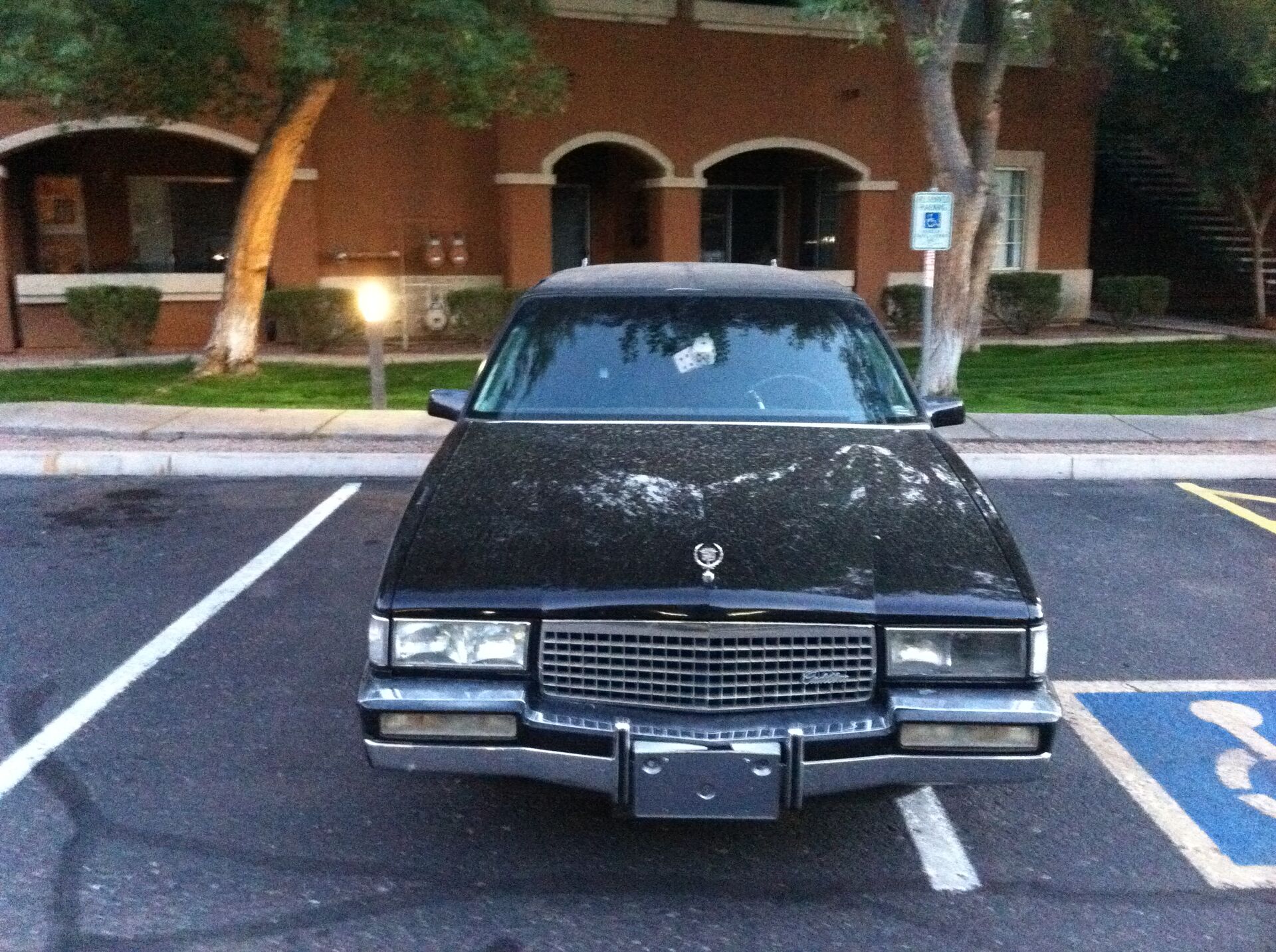 Al van verleden weekend gekocht, maar pas vandaag heb ik alle papieren in orde kunnen maken. Samen met Tom, men maat die volgende maand naar hier komt, heb ik dus een Cadillac limo van 1990 gekocht. 4,5l V8 motor, een echte amerikaner! De benzine vliegt er door, maar kost dan ook minder dan de helft als bij ons in België. Eerst inschrijven bij de VMD, en dan een zo goedkoop mogelijke verzekering proberen aanschaffen! Gelukkig ben ik al iets ouder, en zijn de premies niet even torenhoog in vergelijking met andere studenten! Enige suggesties of ideeen voor leuke upgrades? Mail me!