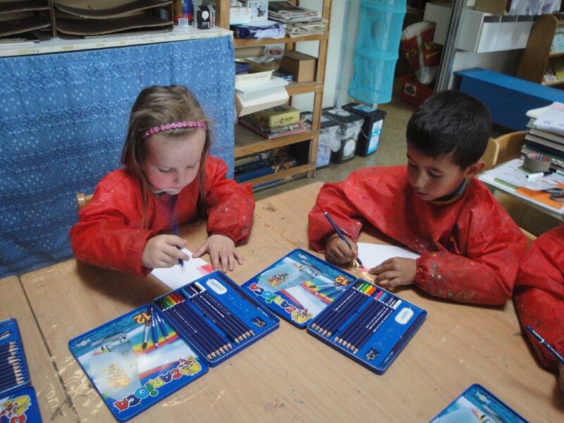 Voor onze papa's maakten we dit jaar een telefoonhoesje. Alle papa's hebben een gsm, dus een beter cadeau dan dat bestaat er niet! Ijverig gingen de kinderen aan het werk om de zakjes te naaien met een grote naald. Eens ze klaar waren met naaien, moesten ze de letters van "ring ring" zoeken in de stempeldoos en dit stempelen op het zakje. Juf kleefde er nog een kleefstripje op en klaar! We maakten een kunstig kaartje met aquarelpotloden. Eerst vlakjes kleuren met de potloden en er dan over schilderen met water. Juf Caroline kleefde er dan een foto op van het gezicht van de kinderen en zij moesten zichzelf erbij tekenen en "papa" schrijven. De resultaten mochten er zijn!!